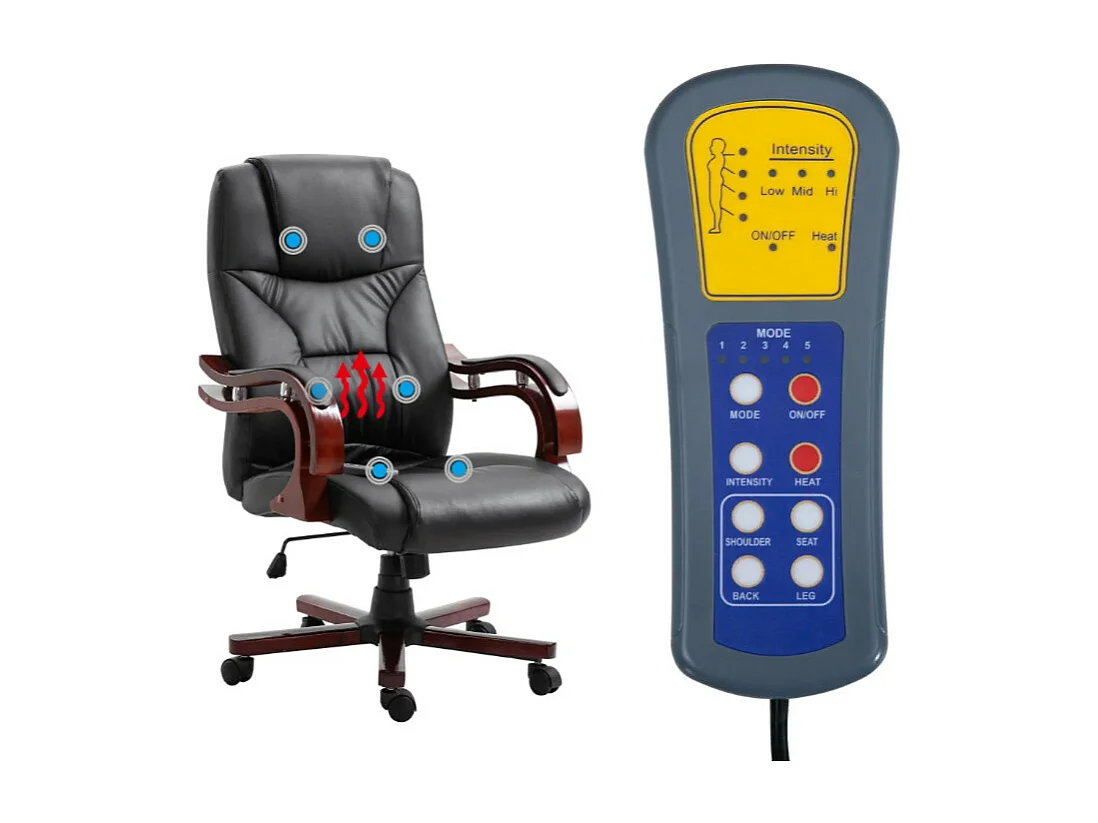 Fauteuil de bureau avec télécommande électrique simili cuir noir et bois courbé foncé Tolou