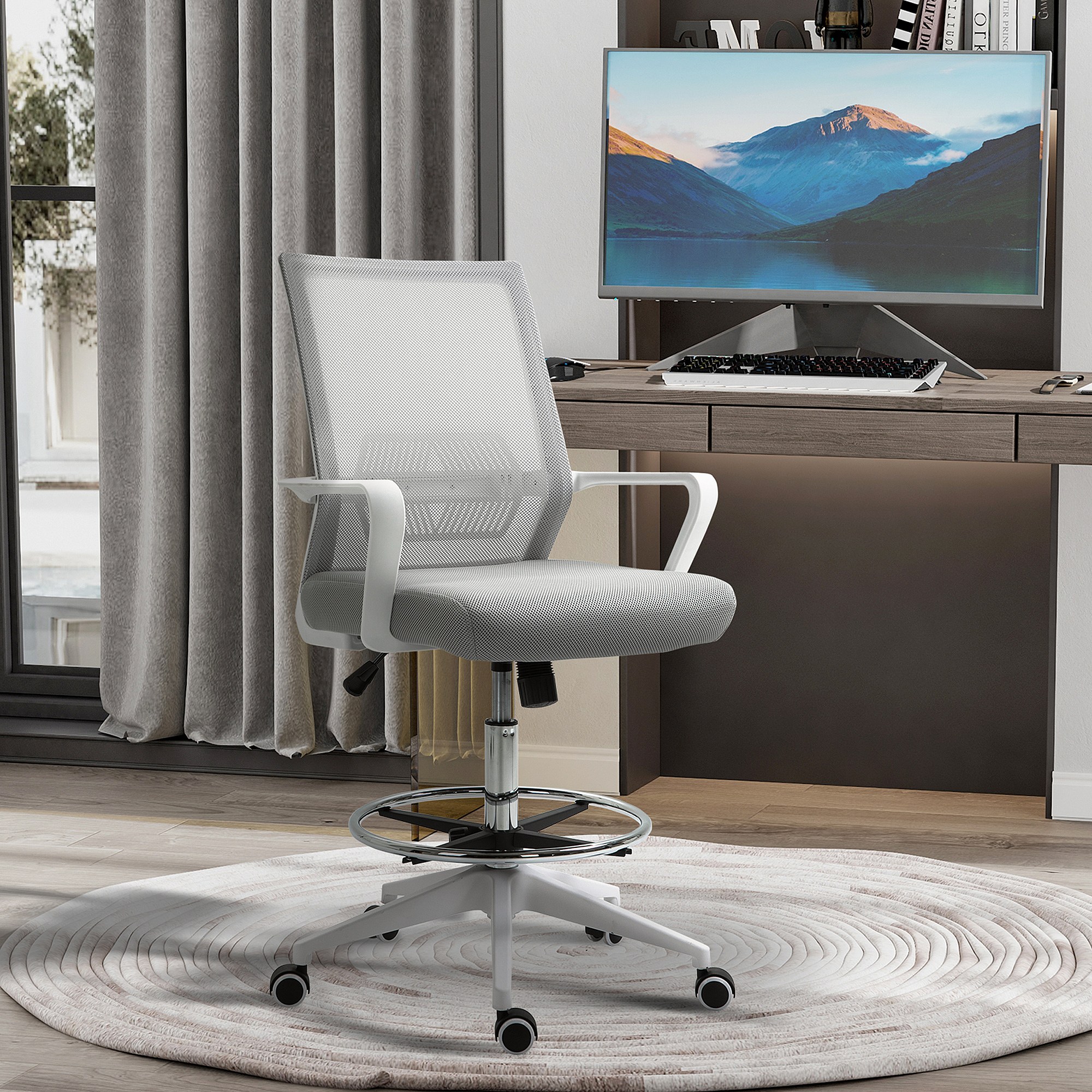 Fauteuil de bureau chaise de bureau assise haute réglable dim. 64L x 60l x 106-126H cm pivotant 360° maille respirante gris