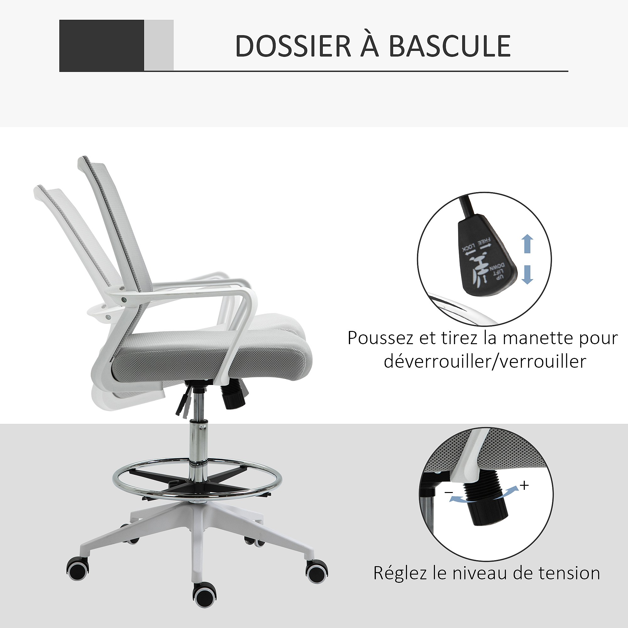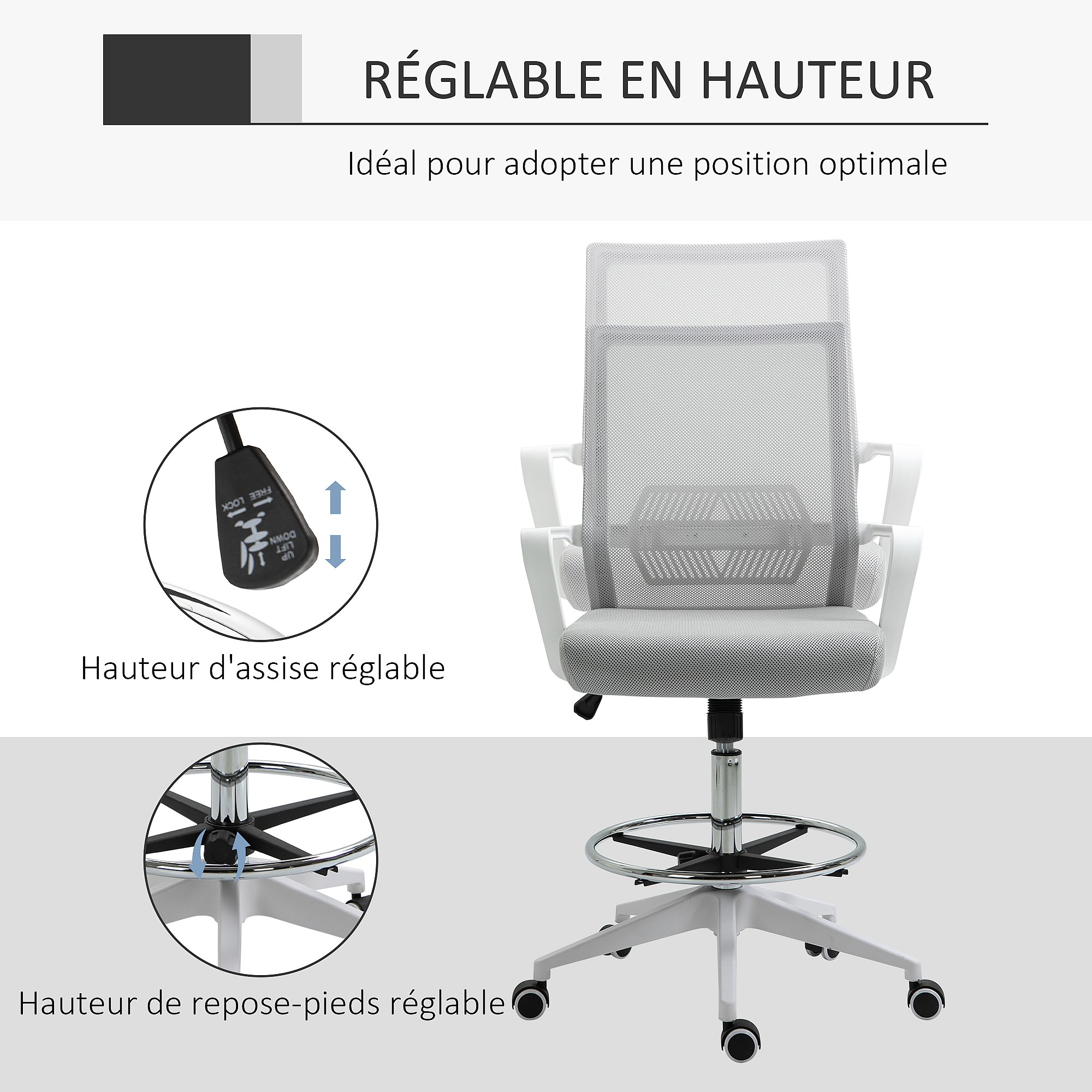 Fauteuil de bureau chaise de bureau assise haute réglable dim. 64L x 59l x 104-124H cm pivotant 360° maille respirante gris