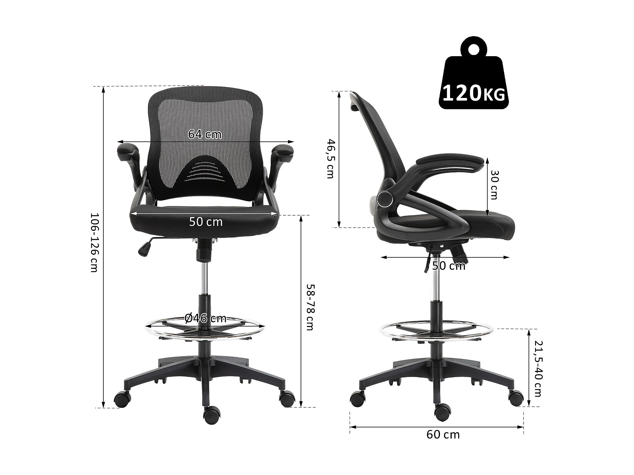 Fauteuil de bureau chaise de bureau assise haute réglable dim. 64L x 60l x 106-126H cm pivotant 360° maille respirante noir