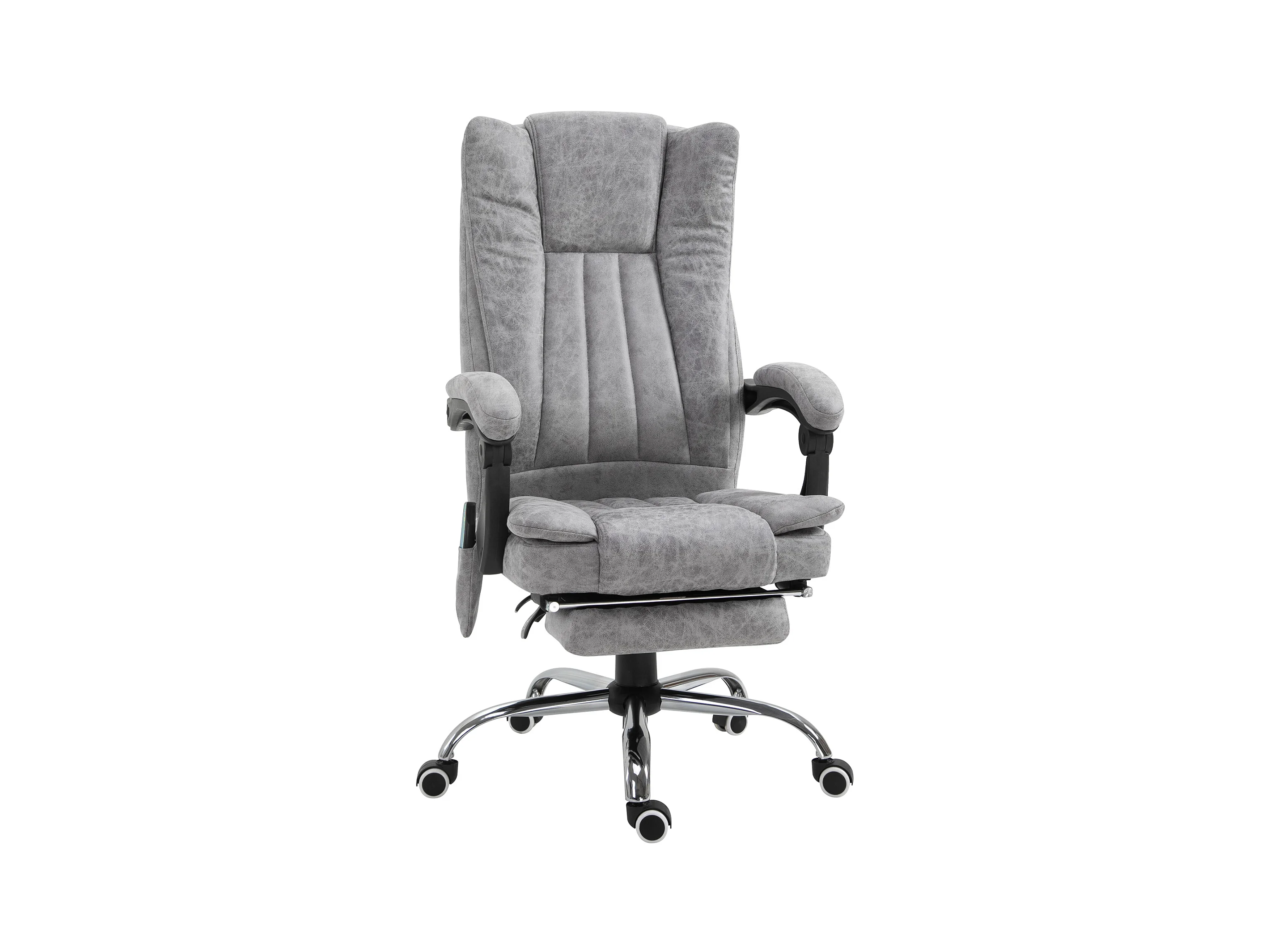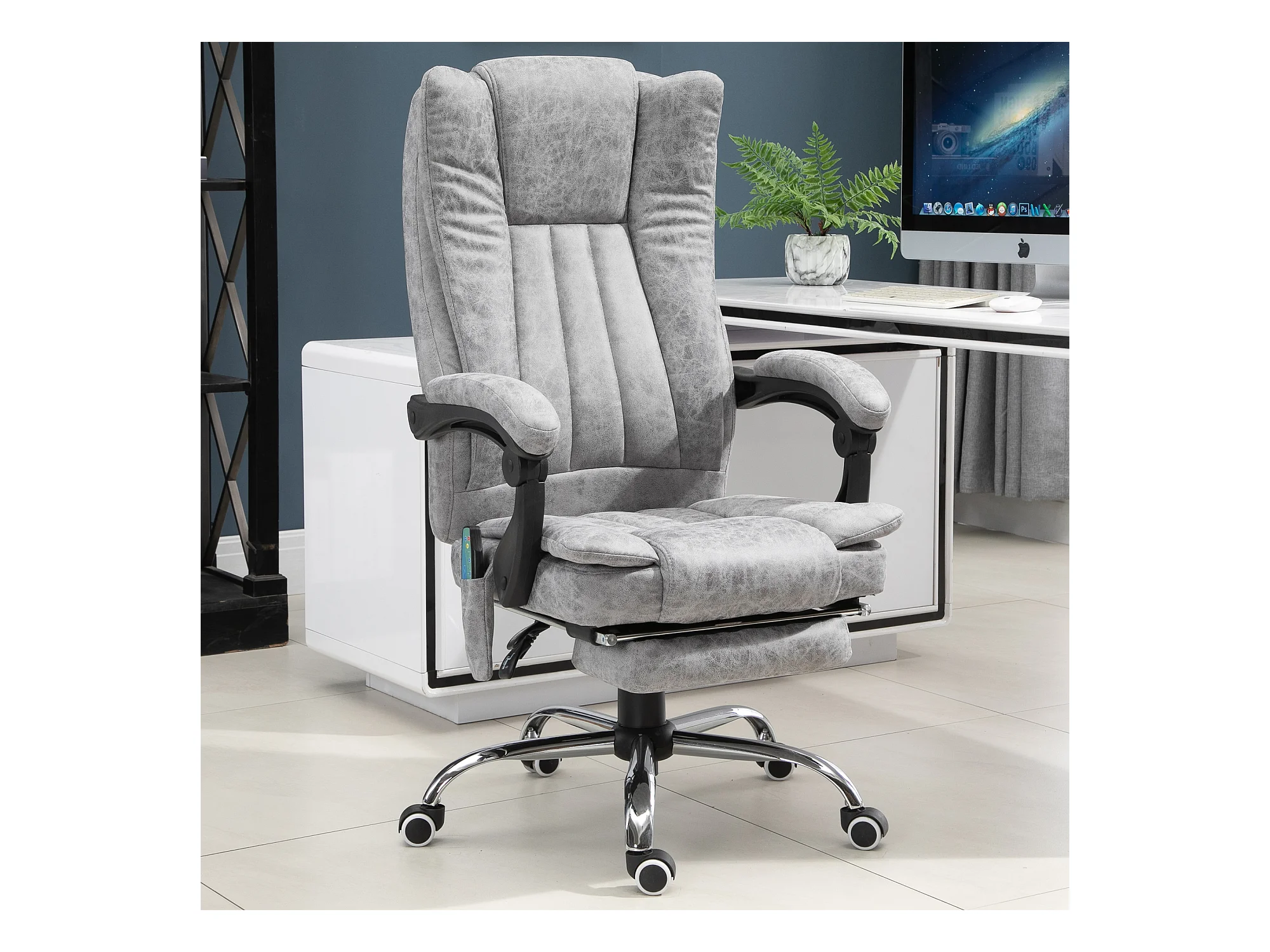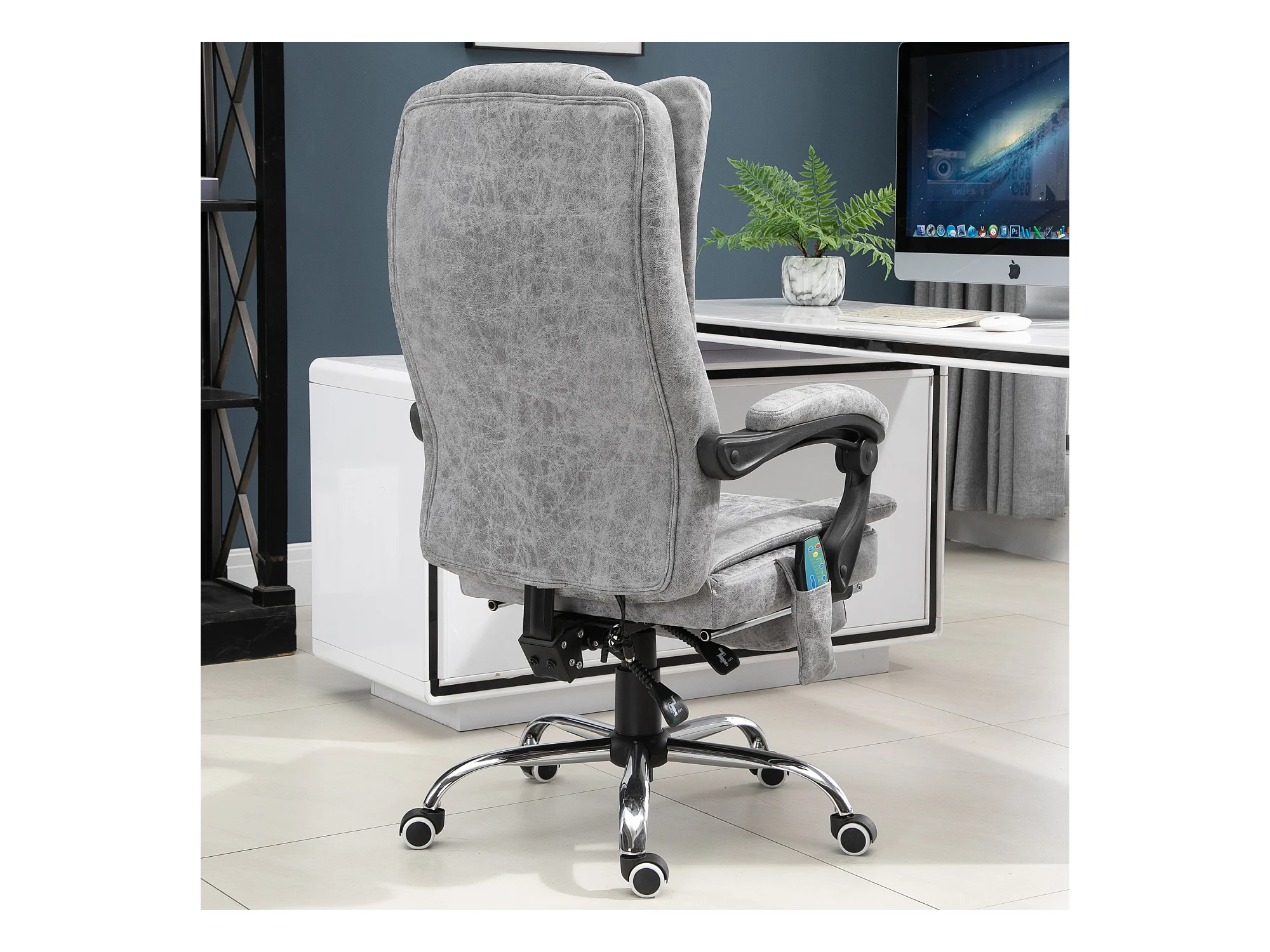 Fauteuil de bureau direction massant chauffant hauteur réglable dossier inclinable repose-pied revêtement synthétique gris