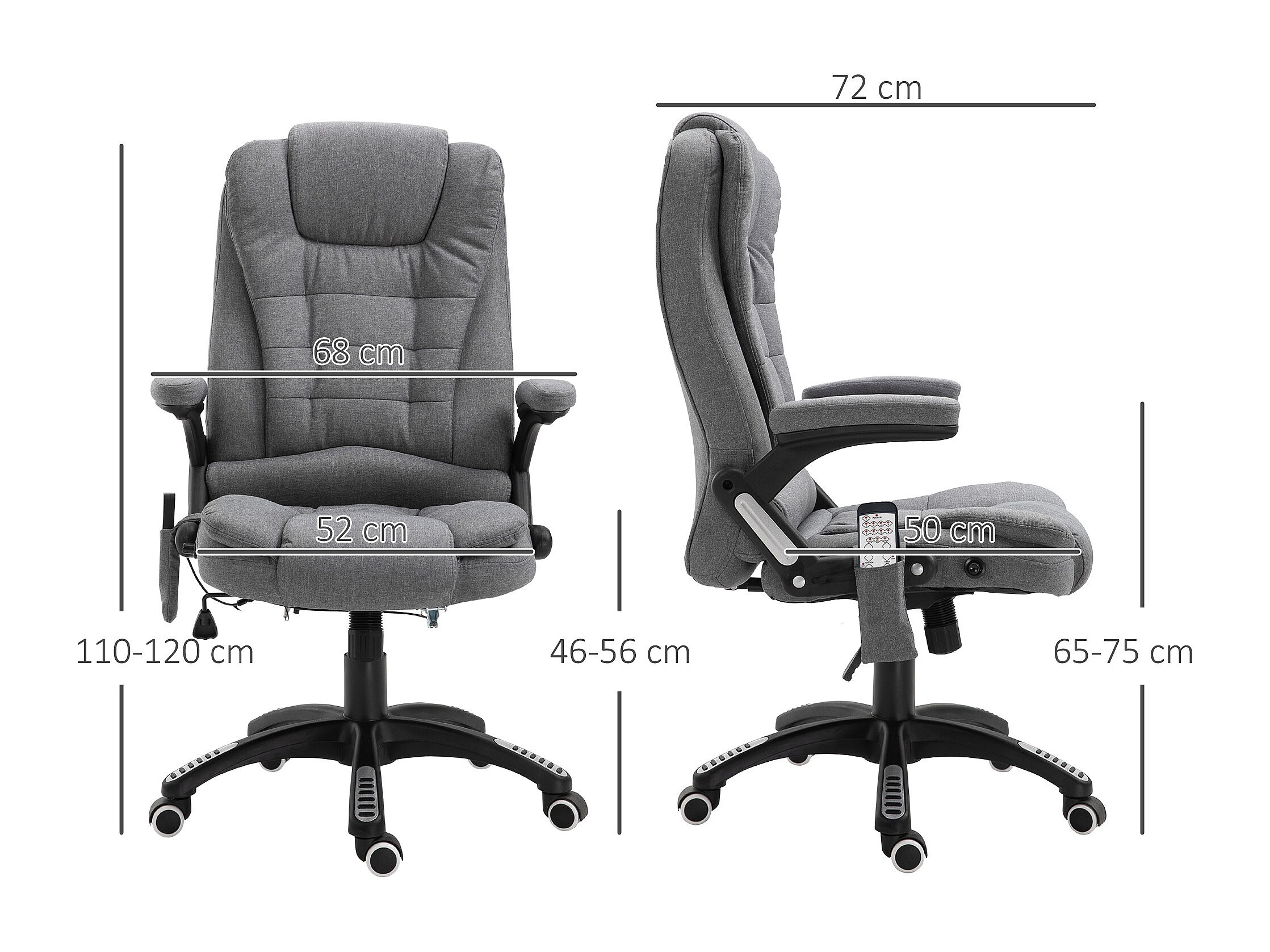 Fauteuil de bureau direction massant chauffant hauteur réglable dossier inclinable toile de lin gris chiné