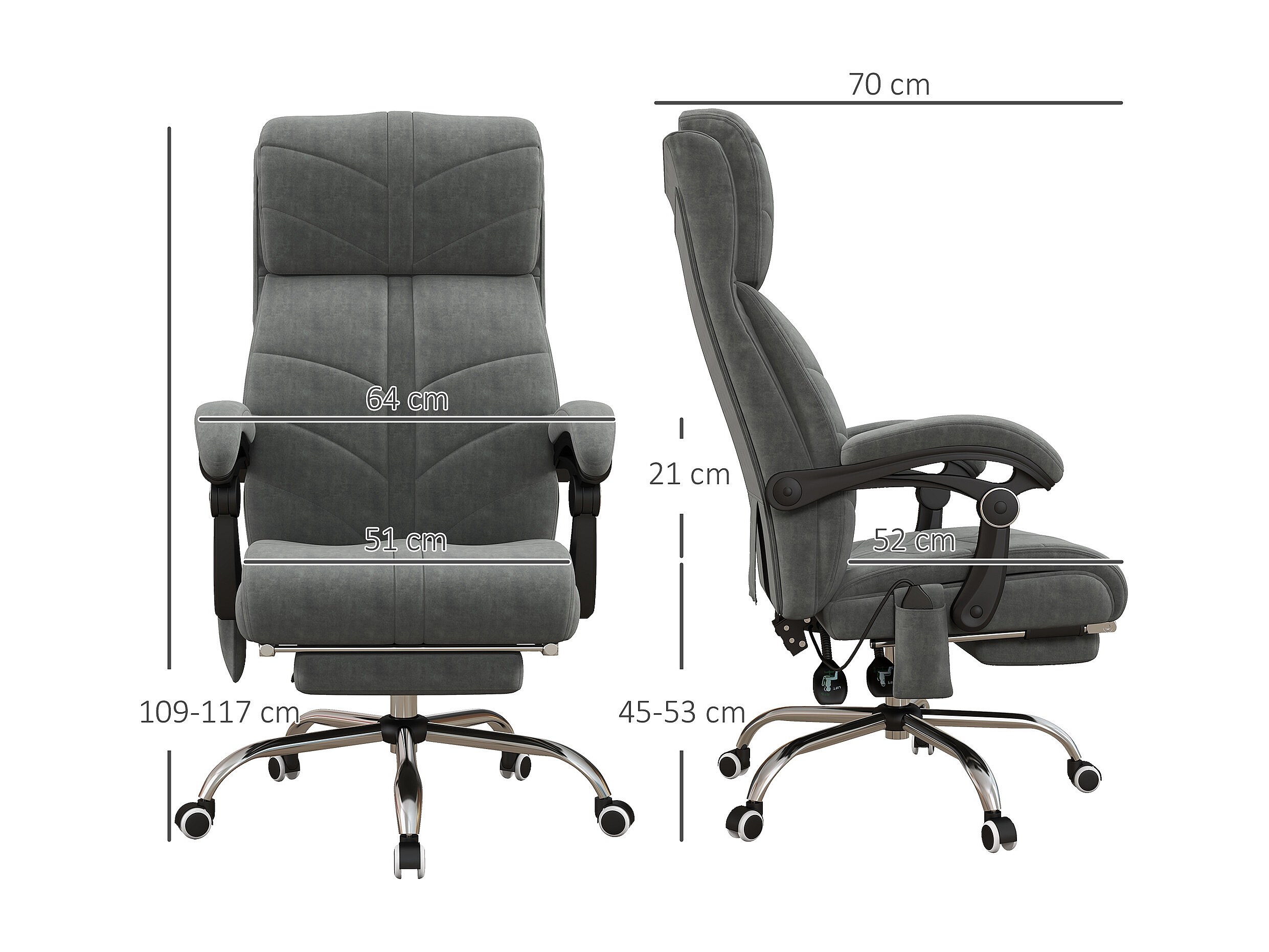Fauteuil de bureau direction massant chauffant inclinable réglable repose-pied intégré tissu toucher flanelle grise