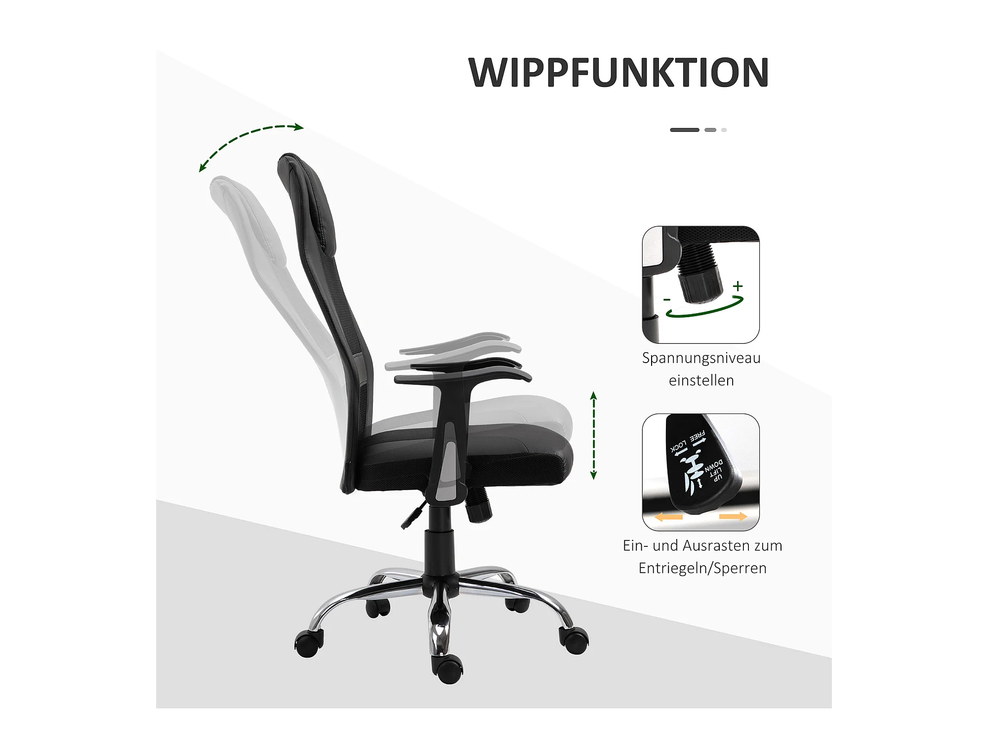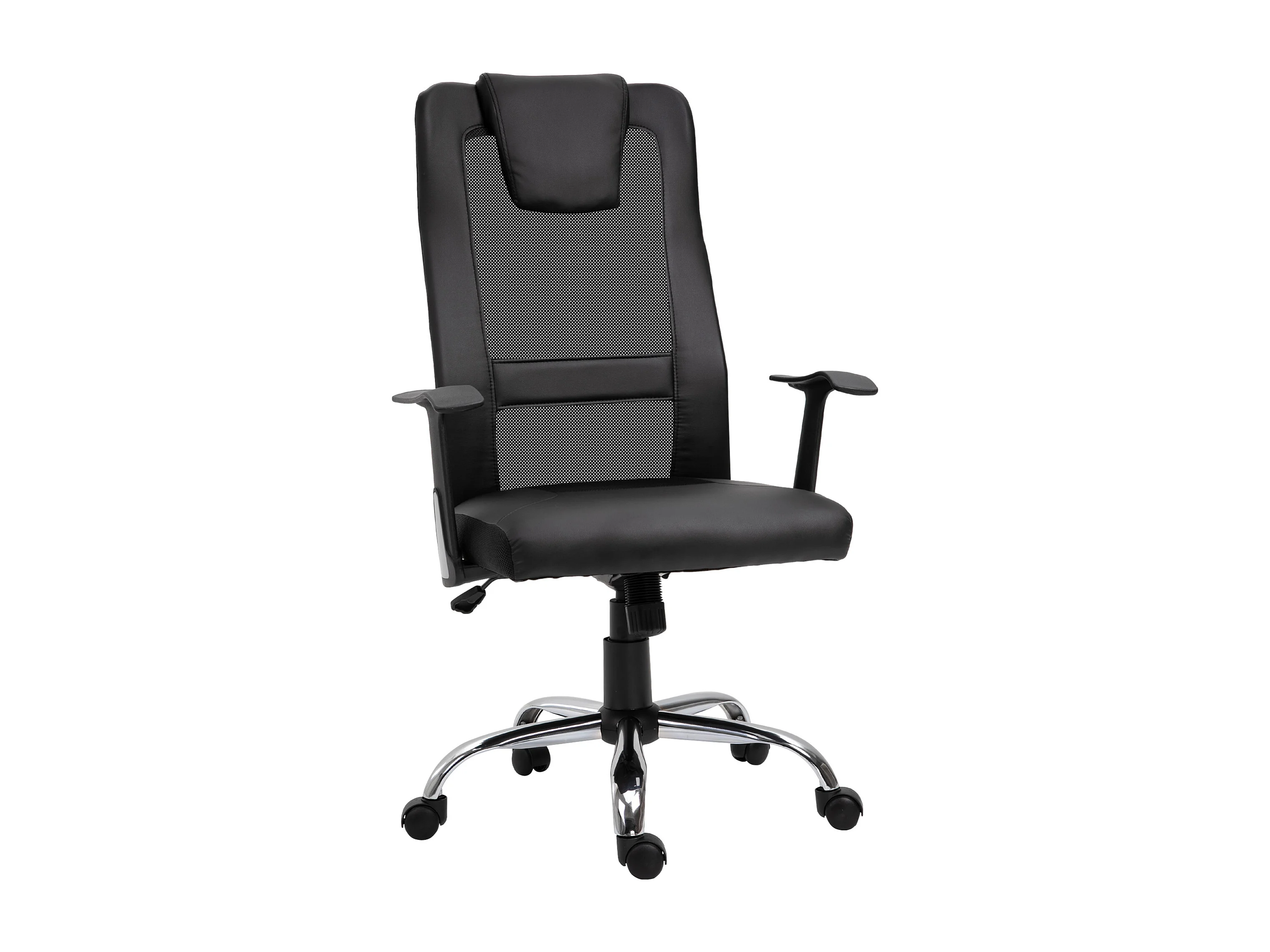Fauteuil de bureau ergonomique avec fonction de bascule, simili cuir noir (66x73x108-118 cm)