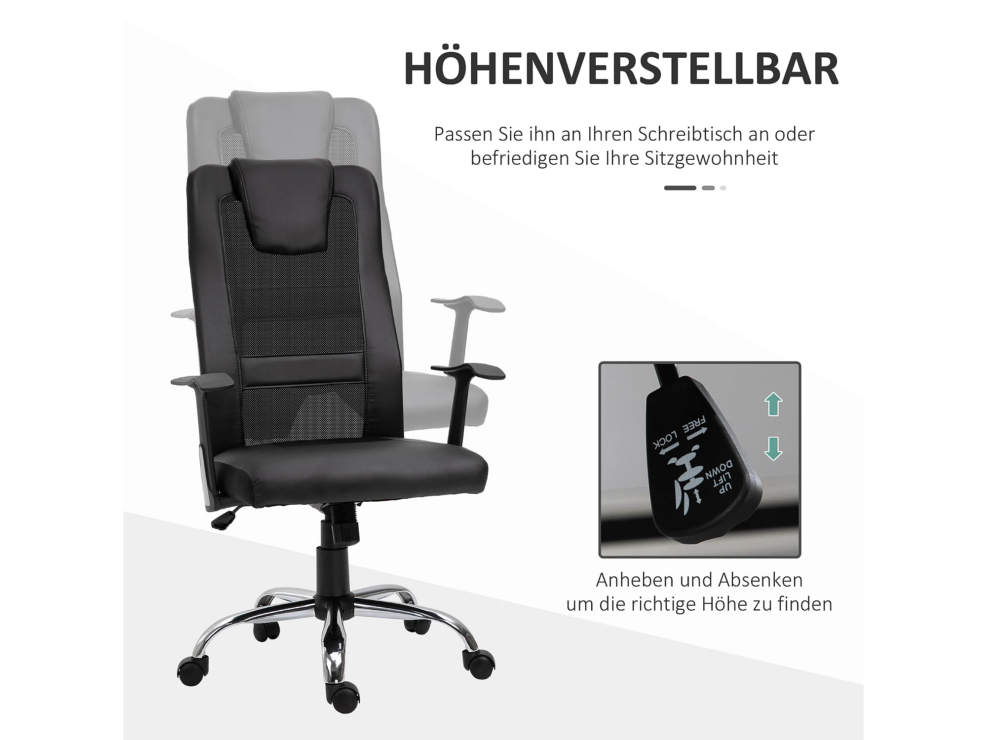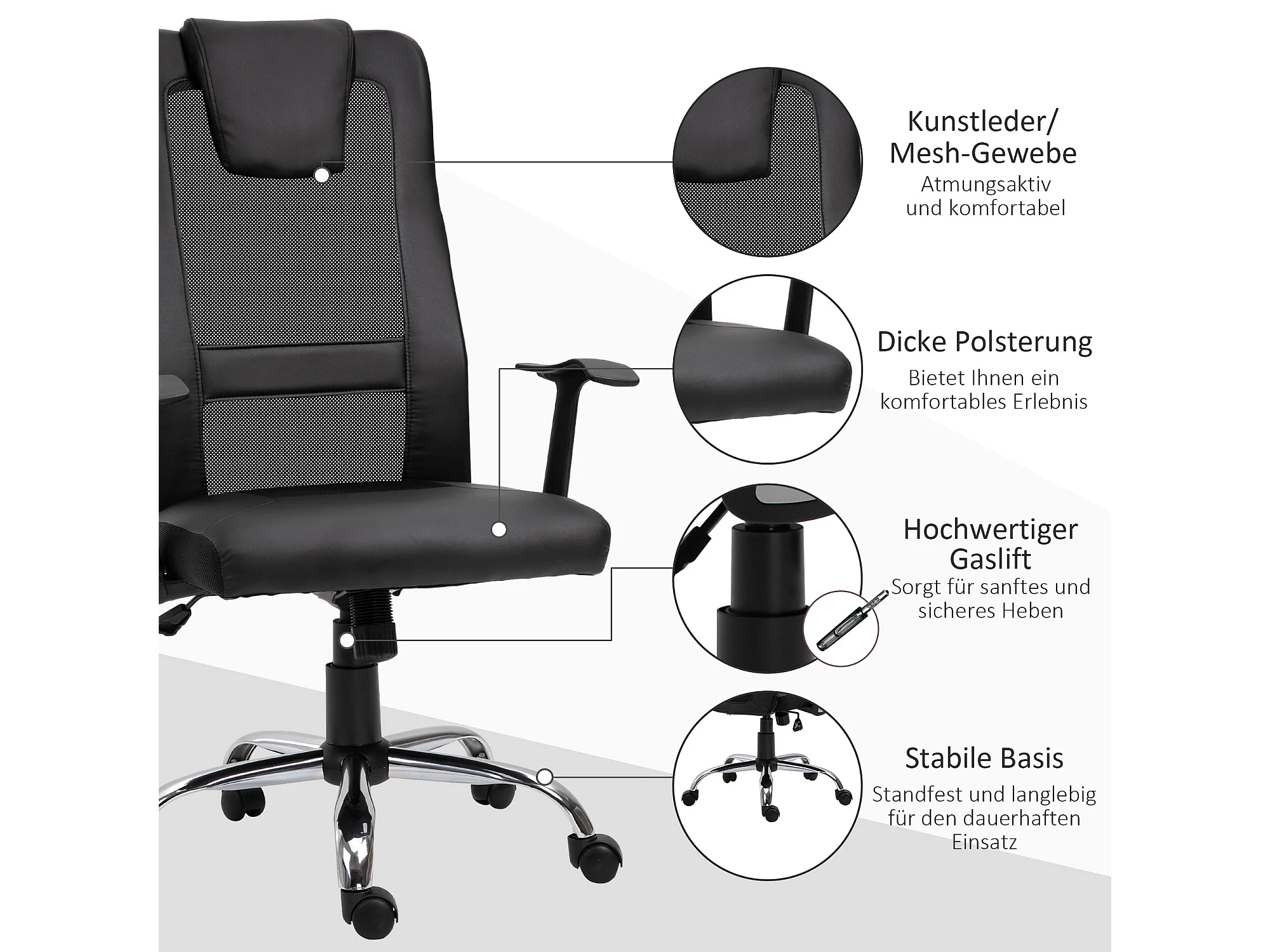 Fauteuil de bureau pivotant avec fonction bascule, simili cuir, réglable, noir (64x78x118-126cm)