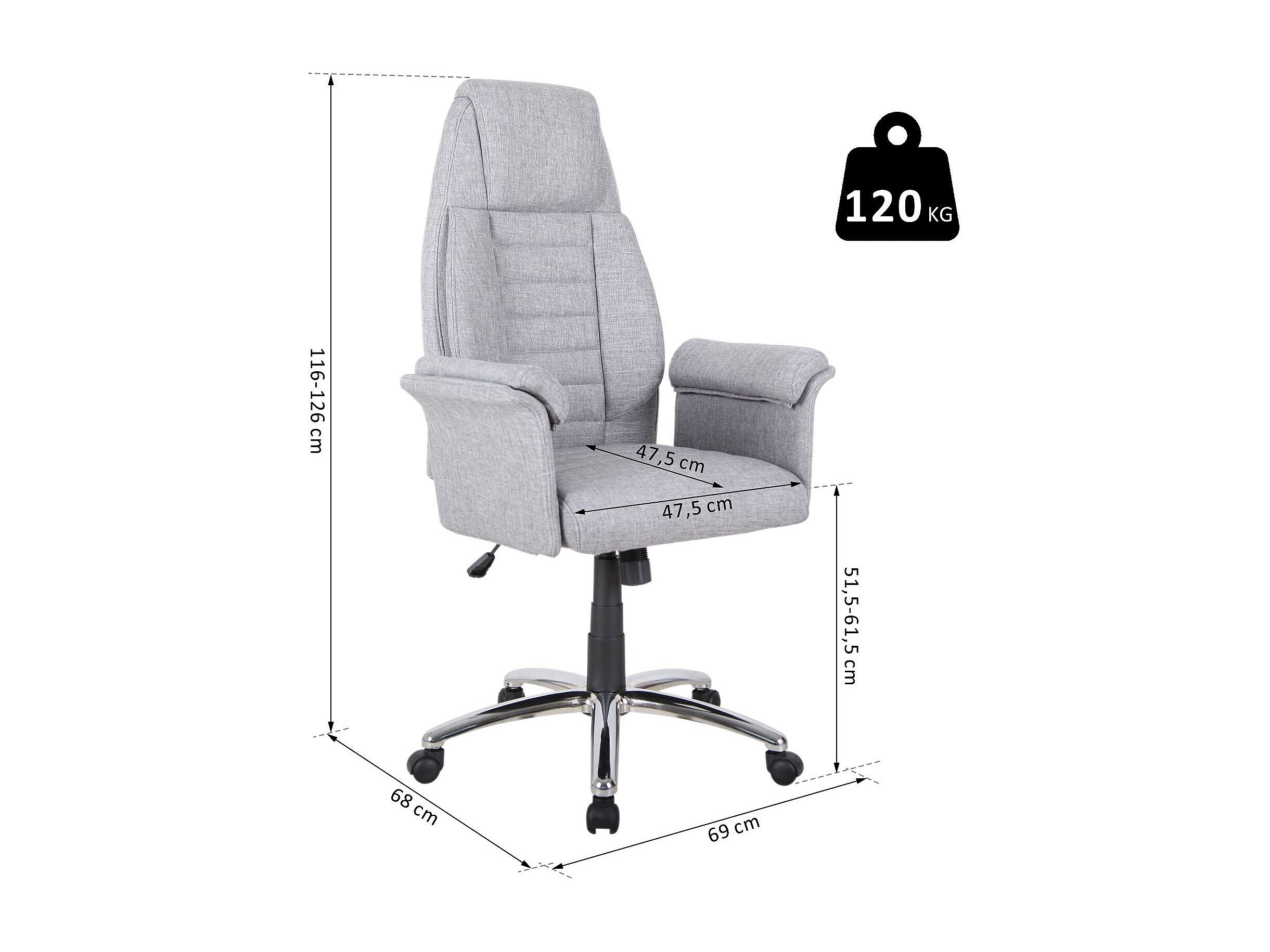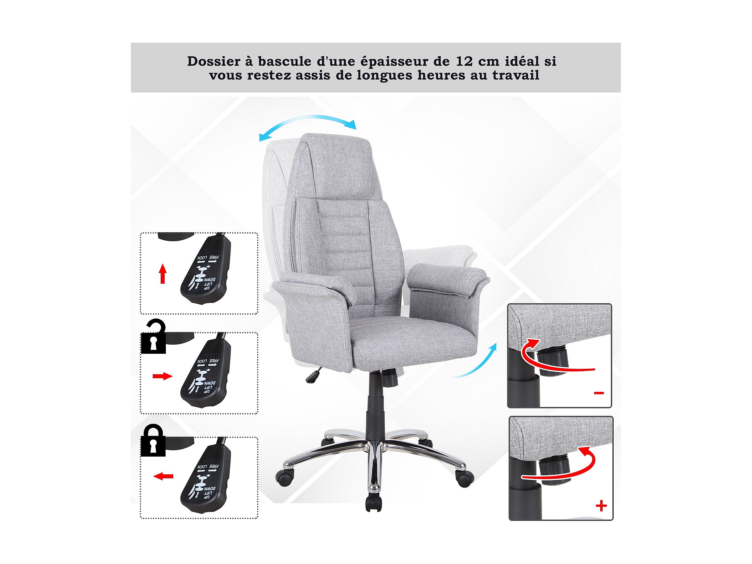 Fauteuil de bureau direction massant chauffant hauteur réglable dossier inclinable toile de lin gris chiné