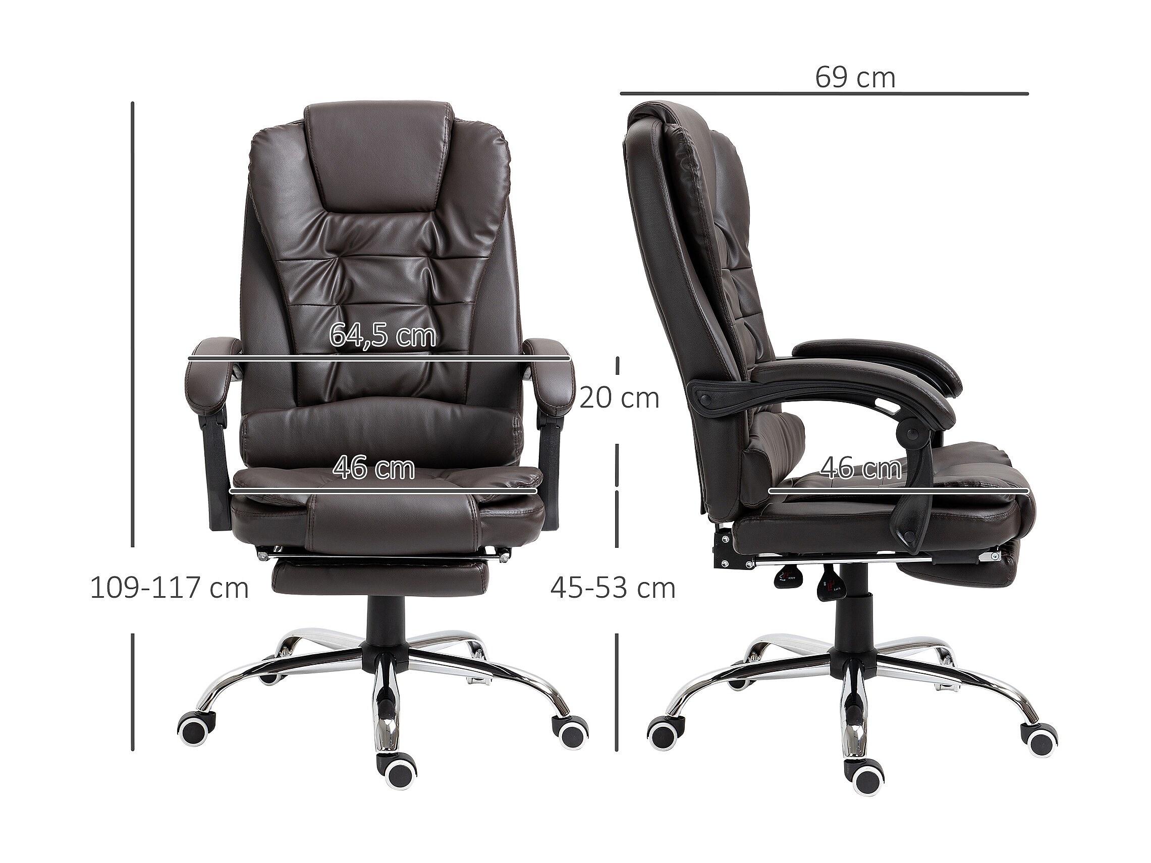 Fauteuil de bureau fauteuil manager grand confort réglable dossier inclinable repose-pied revêtement synthétique chocolat