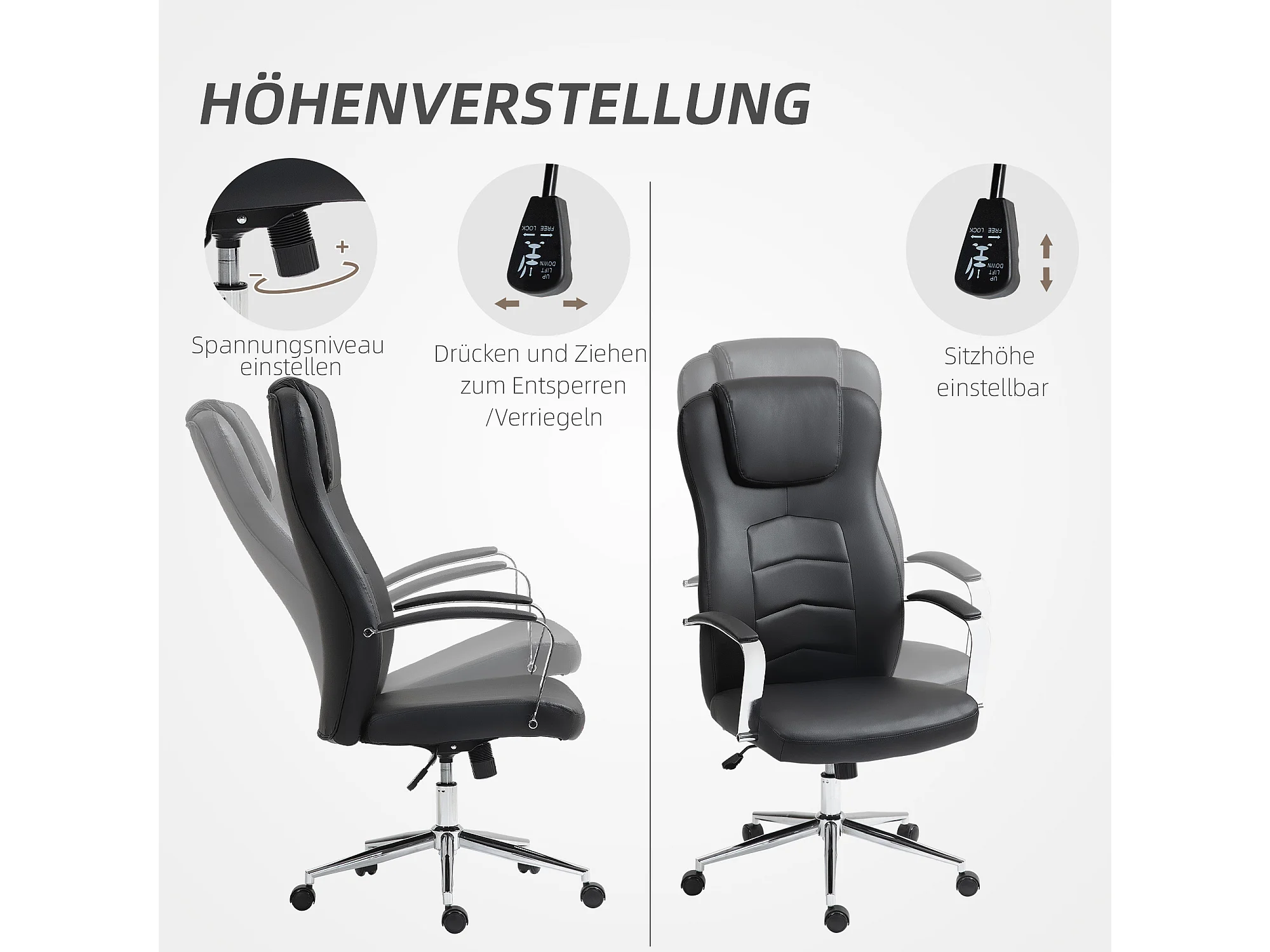 Fauteuil de bureau pivotant avec fonction bascule, simili cuir, réglable, noir (64x78x118-126cm)
