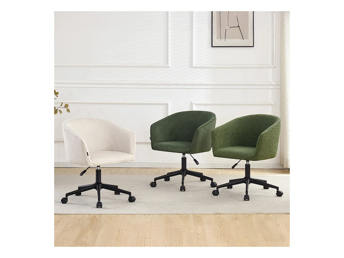 Fauteuil de bureau pivotant et réglable en hauteur en velours côtelé beige - Marlo