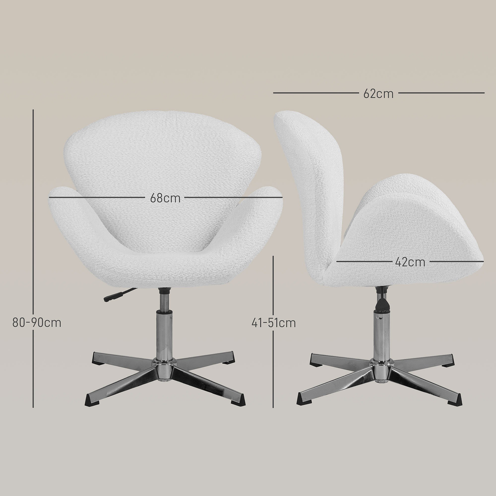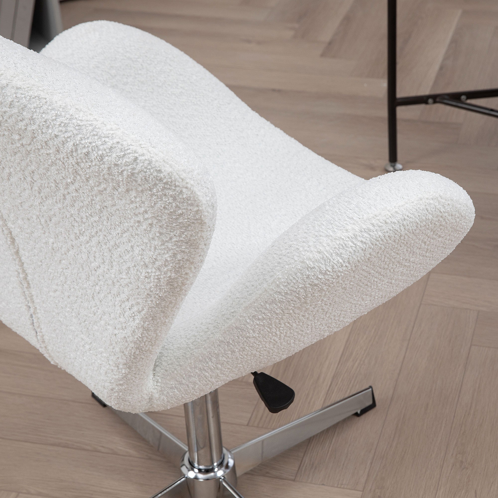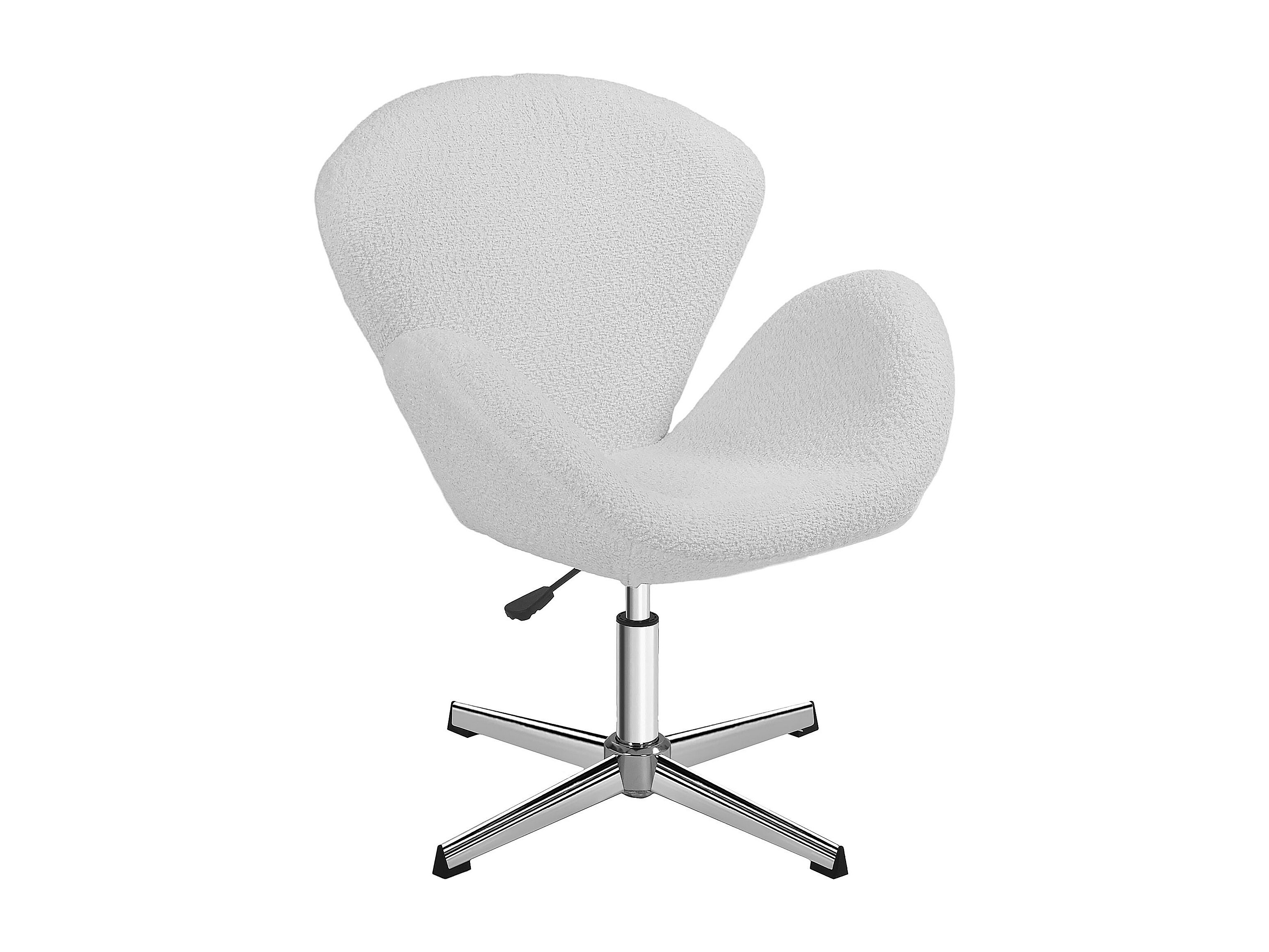 Fauteuil de bureau salon design néo-rétro hauteur réglable piètement acier chromé effet laine bouclée blanc