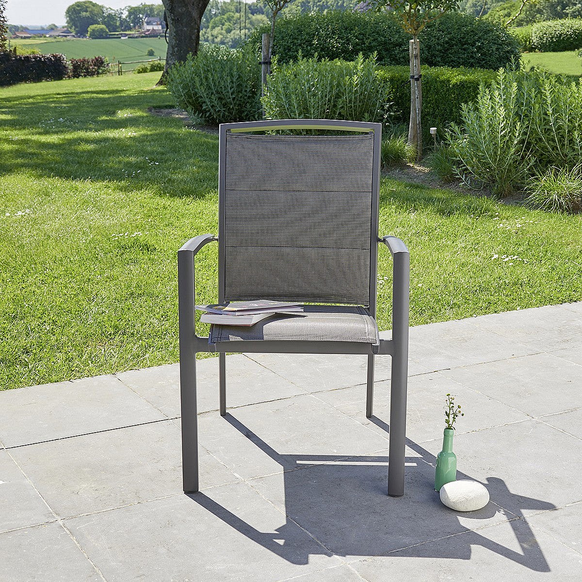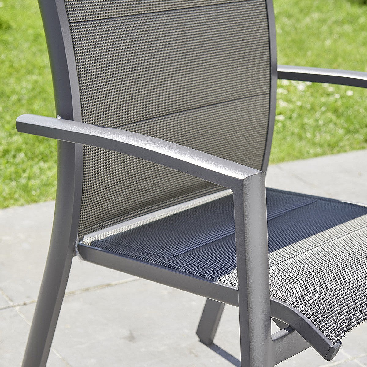Fauteuil de jardin en aluminium et textilène gris