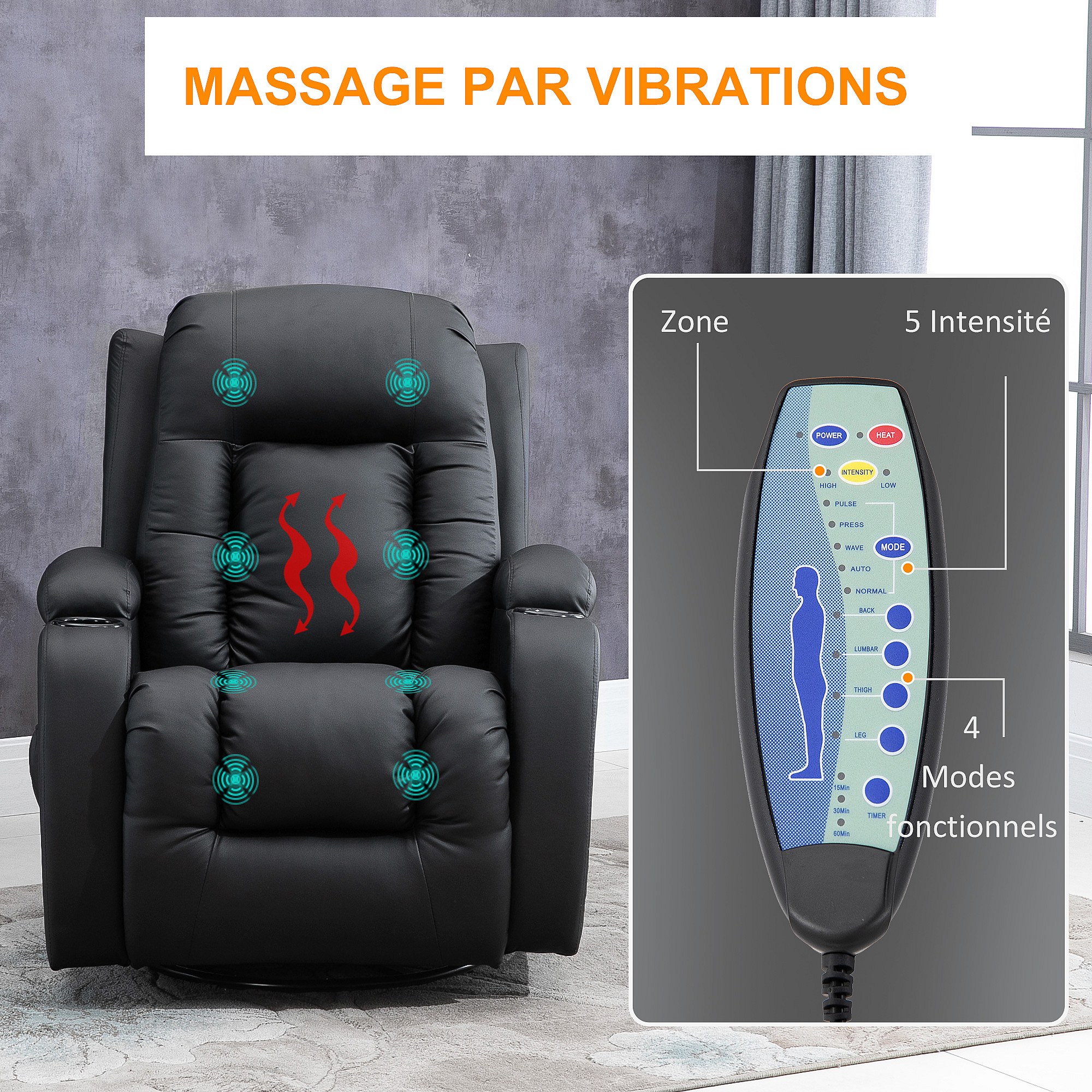 Fauteuil de massage et relaxation électrique chauffant inclinable manuellement repose-pied télécommande noir