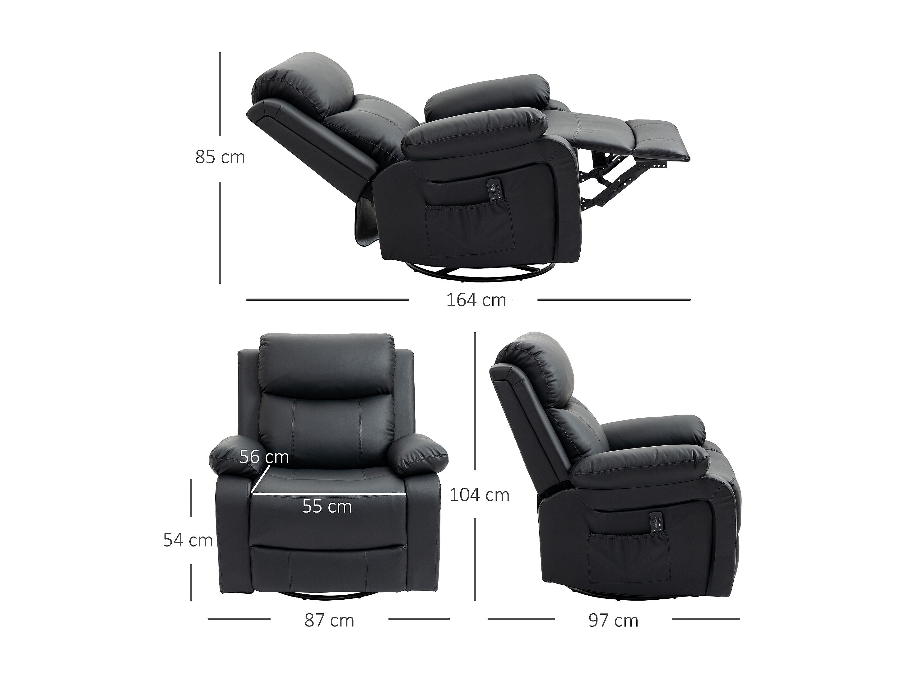 Fauteuil de massage et relaxation électrique inclinable pivotant repose-pied télécommande noir