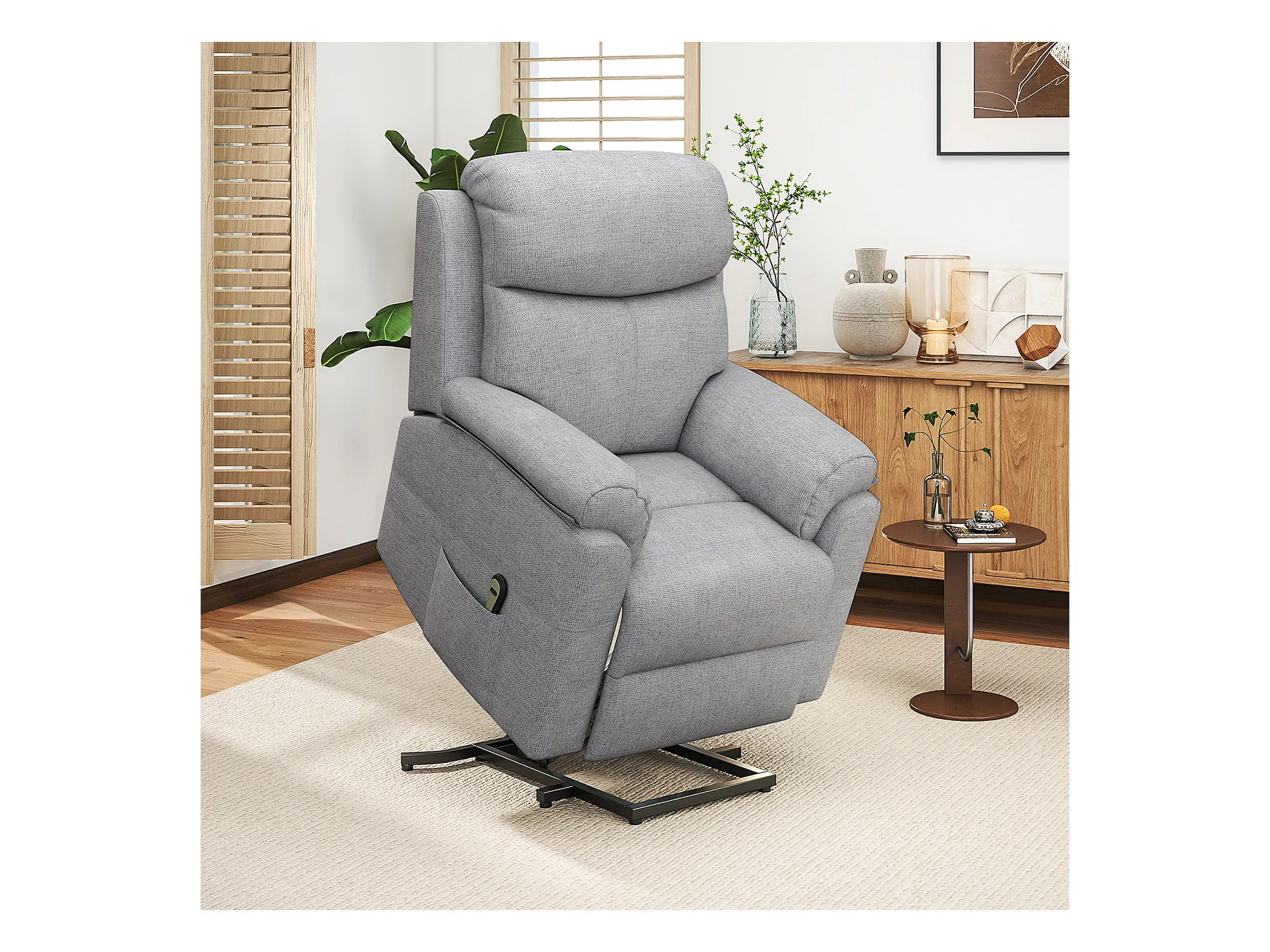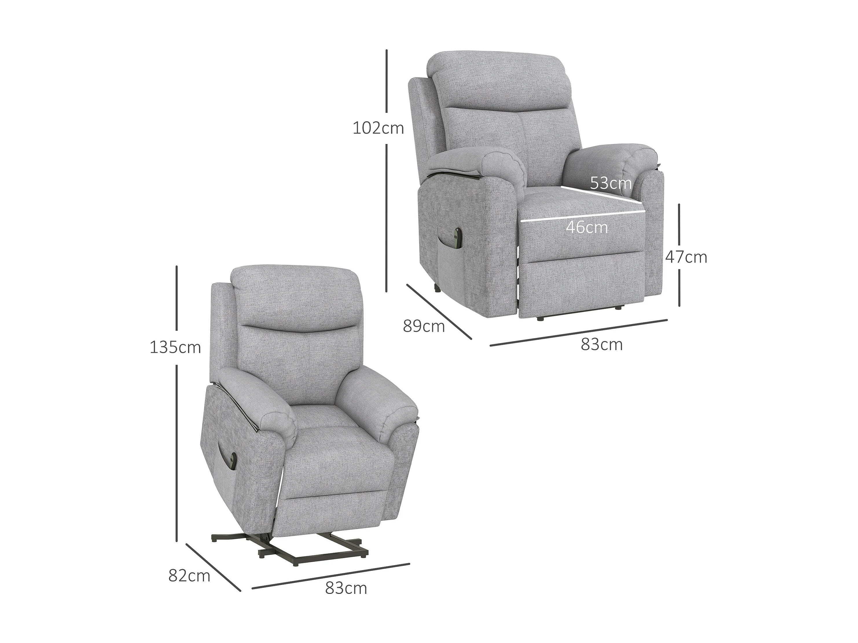 Fauteuil de massage releveur électrique - fauteuil inclinable avec repose-pied ajustable, télécommande - tissu aspect lin gris