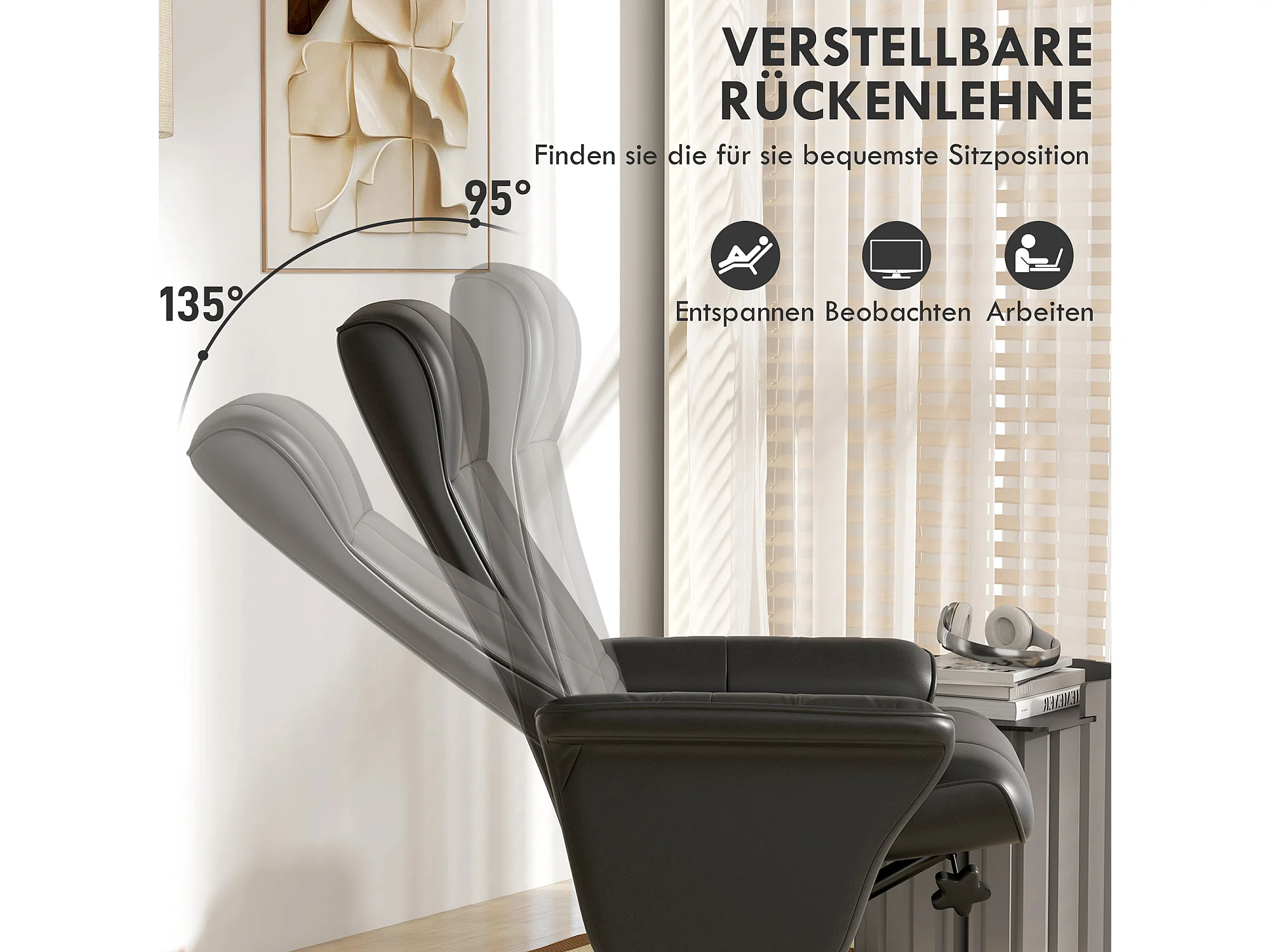 Fauteuil de relaxation avec repose-pieds, pivotant 360°, fonction inclinaison, polyester, noir (69x71x104 cm)