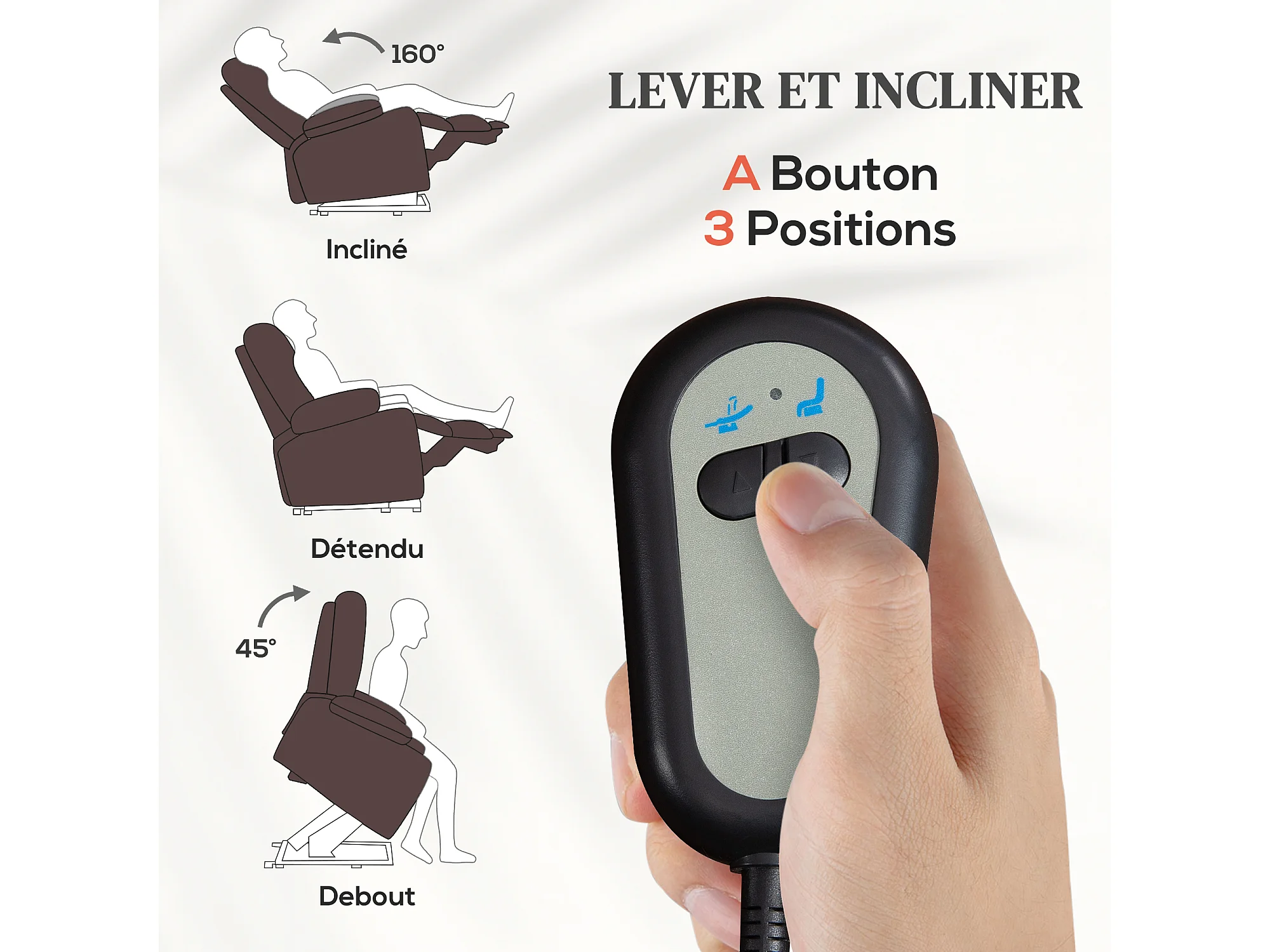 Fauteuil de relaxation électrique fauteuil releveur inclinable repose-pied ajustable revêtement synthétique chocolat