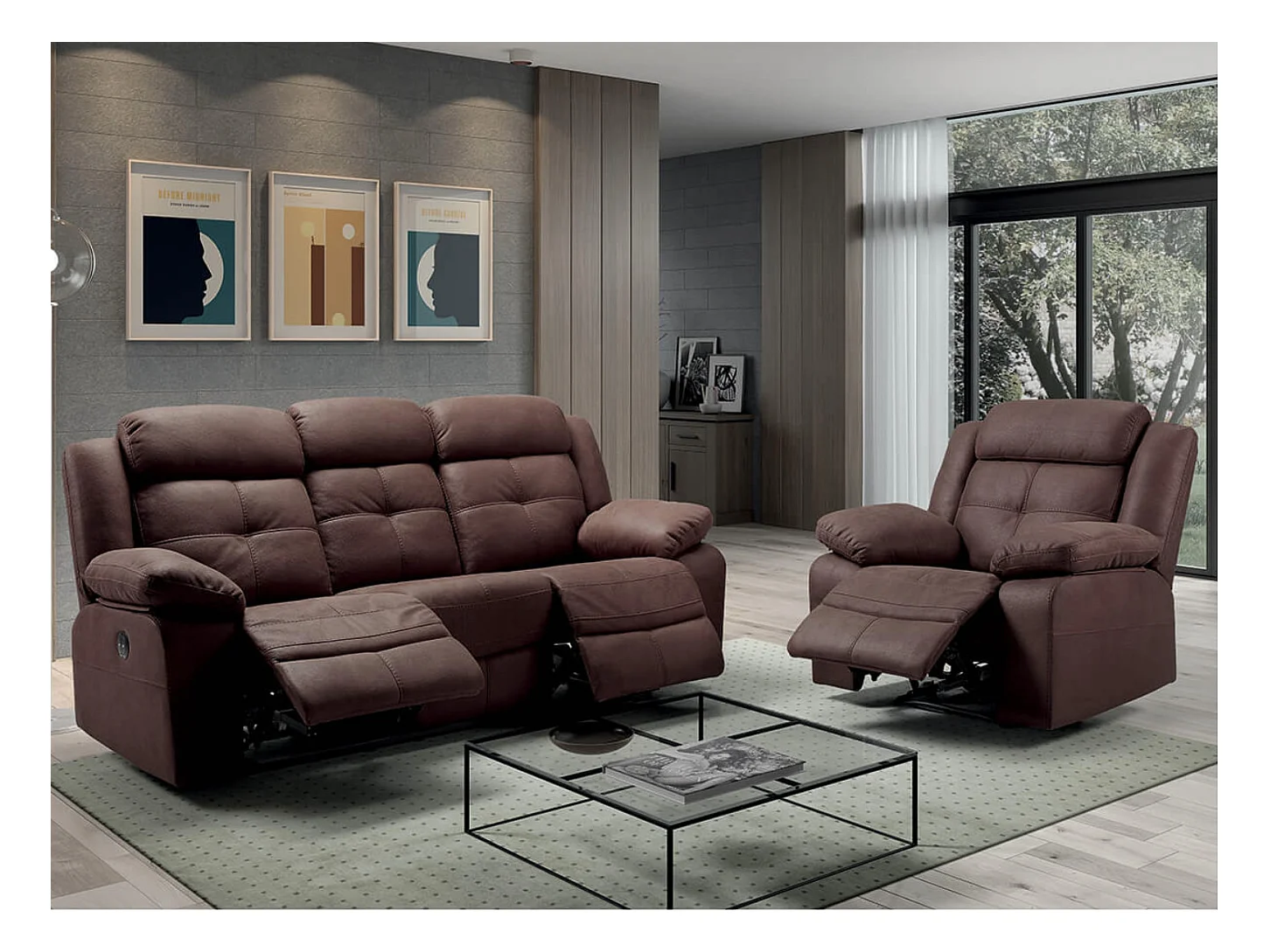Fauteuil de relaxation manuel nubuck chocolat Pinya