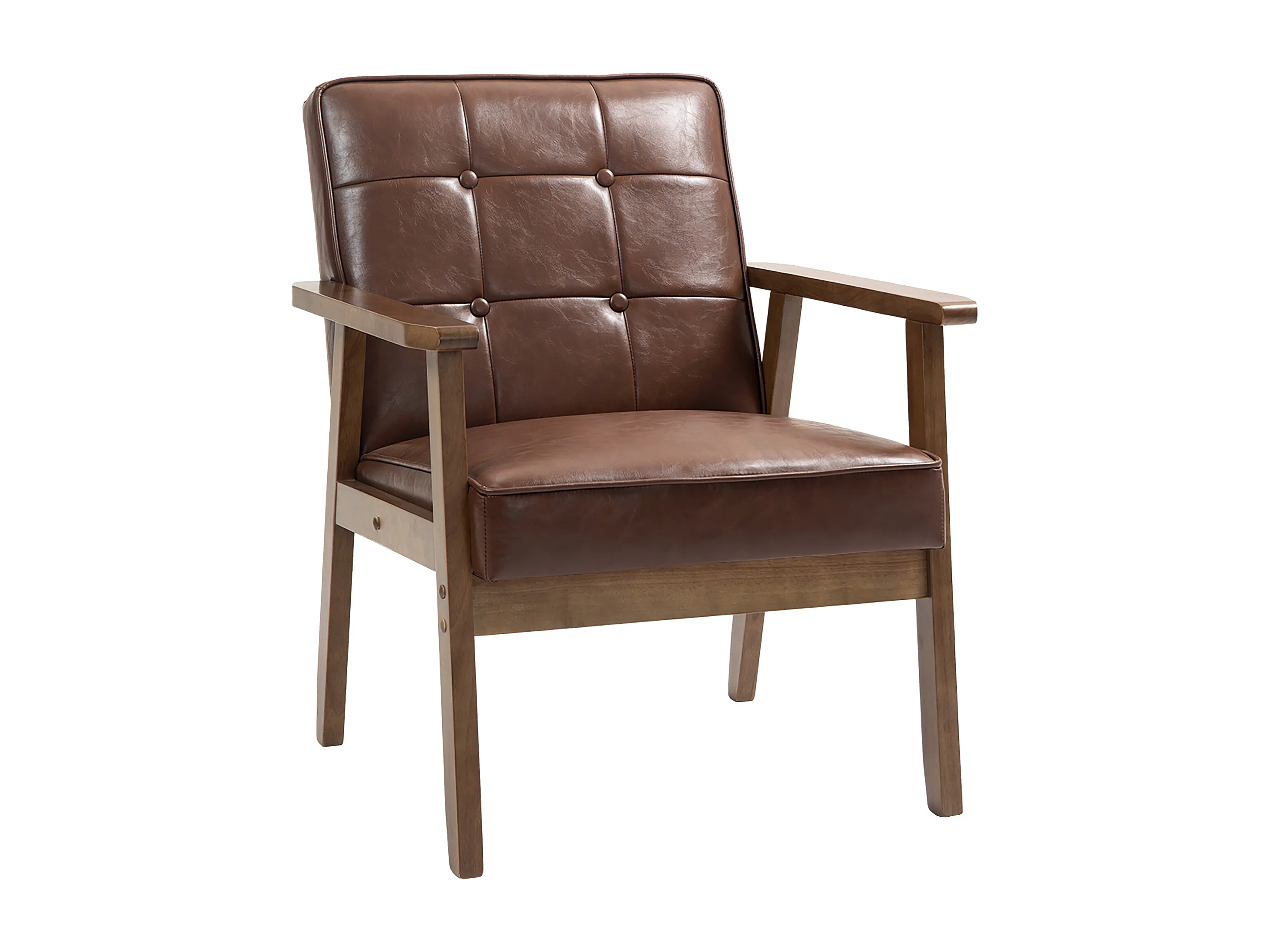 Fauteuil de salon lounge design Chesterfield bois hévéa foncé synthétique chocolat