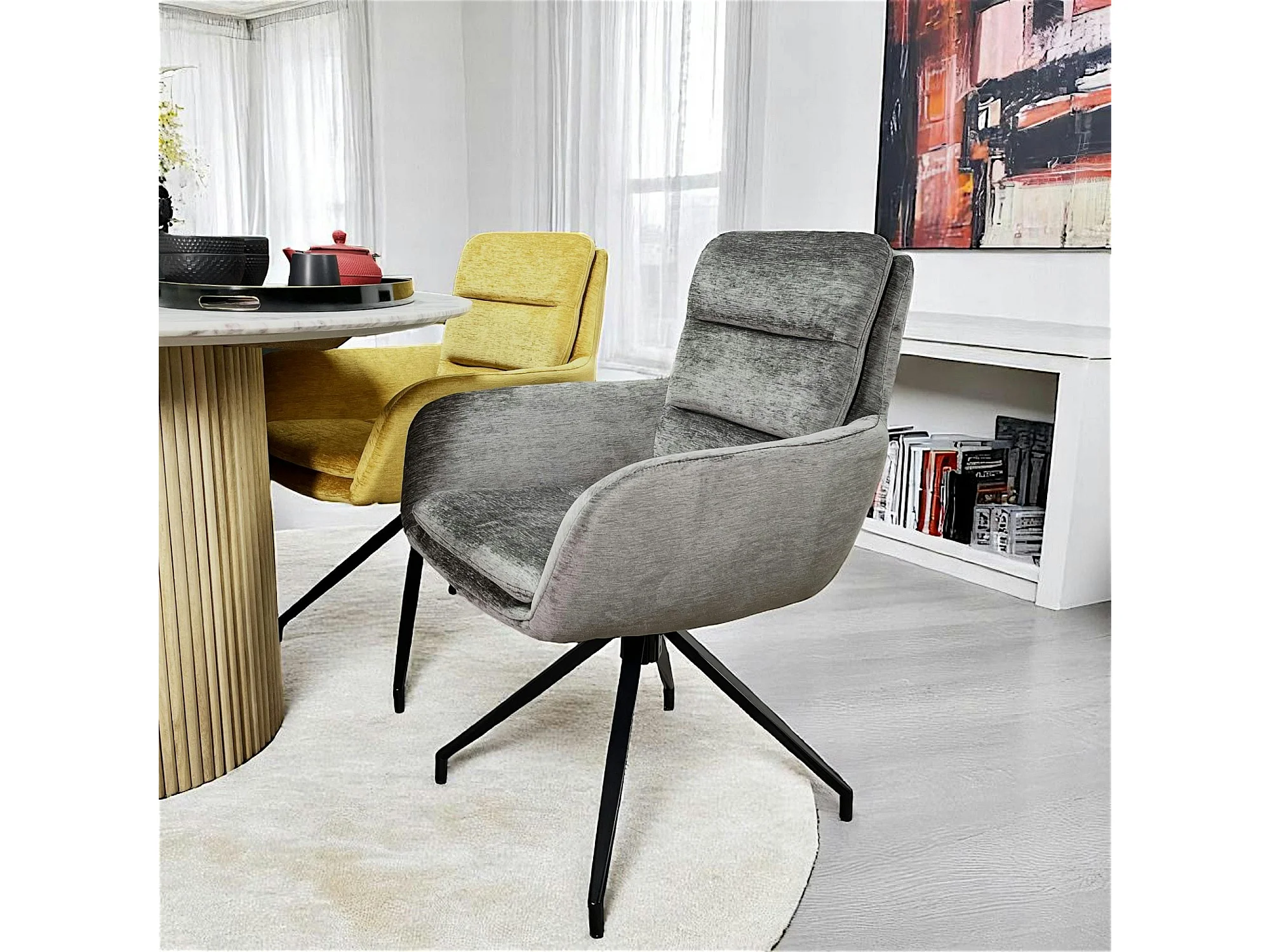 Fauteuil de table pivotant en velours gris (lot de 2) PALERME