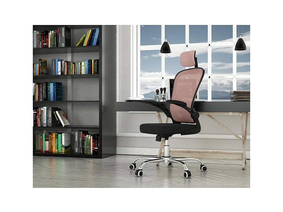 Chaise de bureau ergonomique avec appuie-tête, soutien lombaire, siège réglable et fonction basculante, tissu maillé, noir (64x59x104-124 cm)