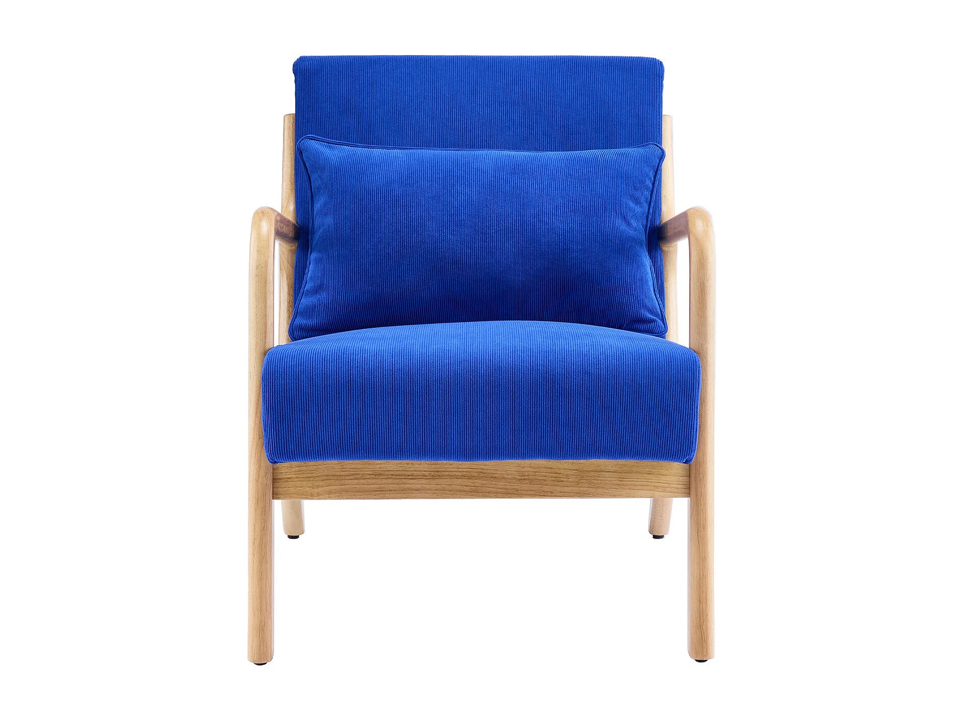 Fauteuil en bois et velours côtelé bleu électrique - Lanna