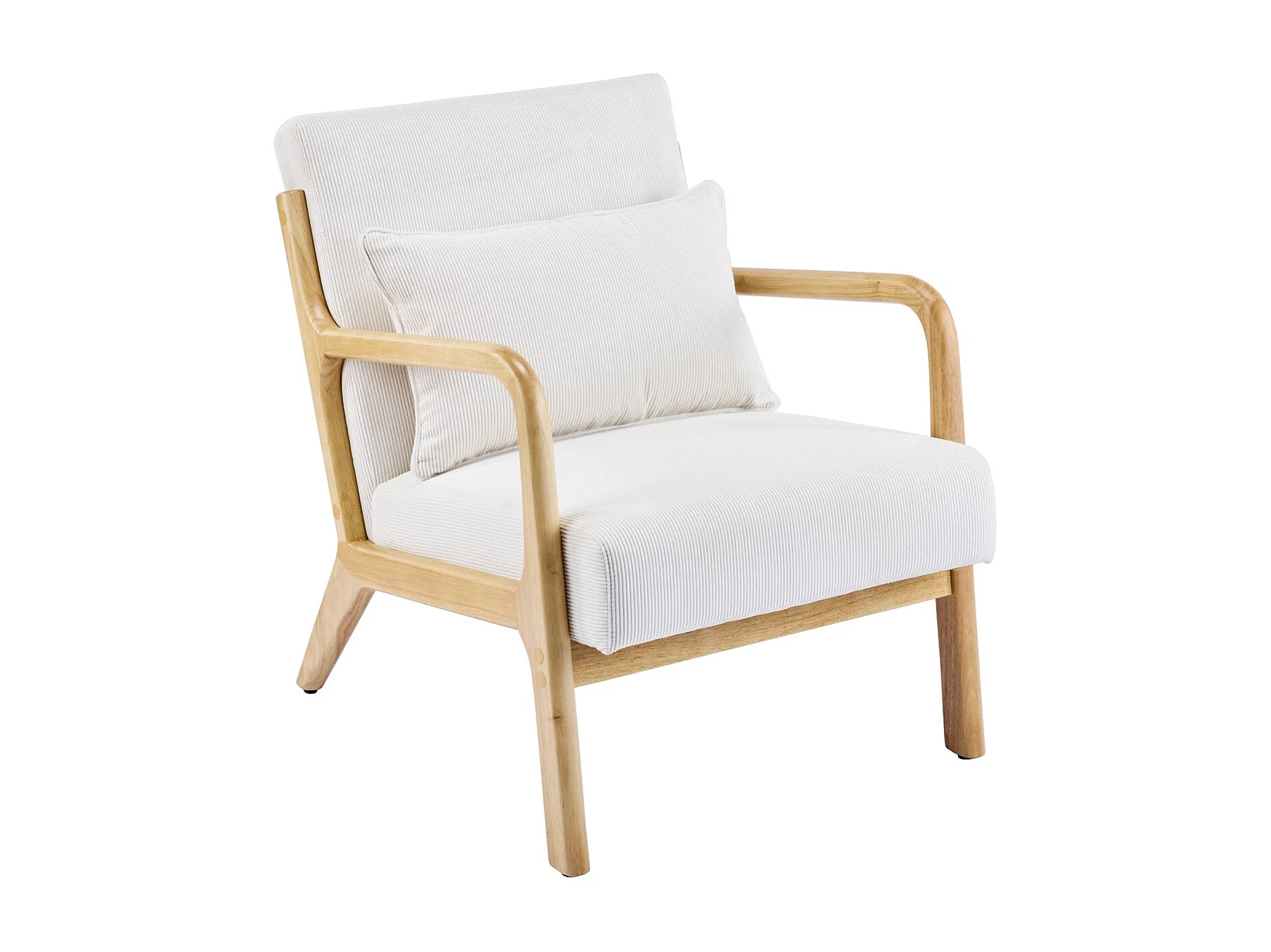 Fauteuil en bois et velours fines côtes beige - Lanna