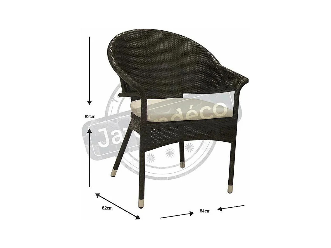 Fauteuil en polyrésine chocolat avec accoudoirs teck