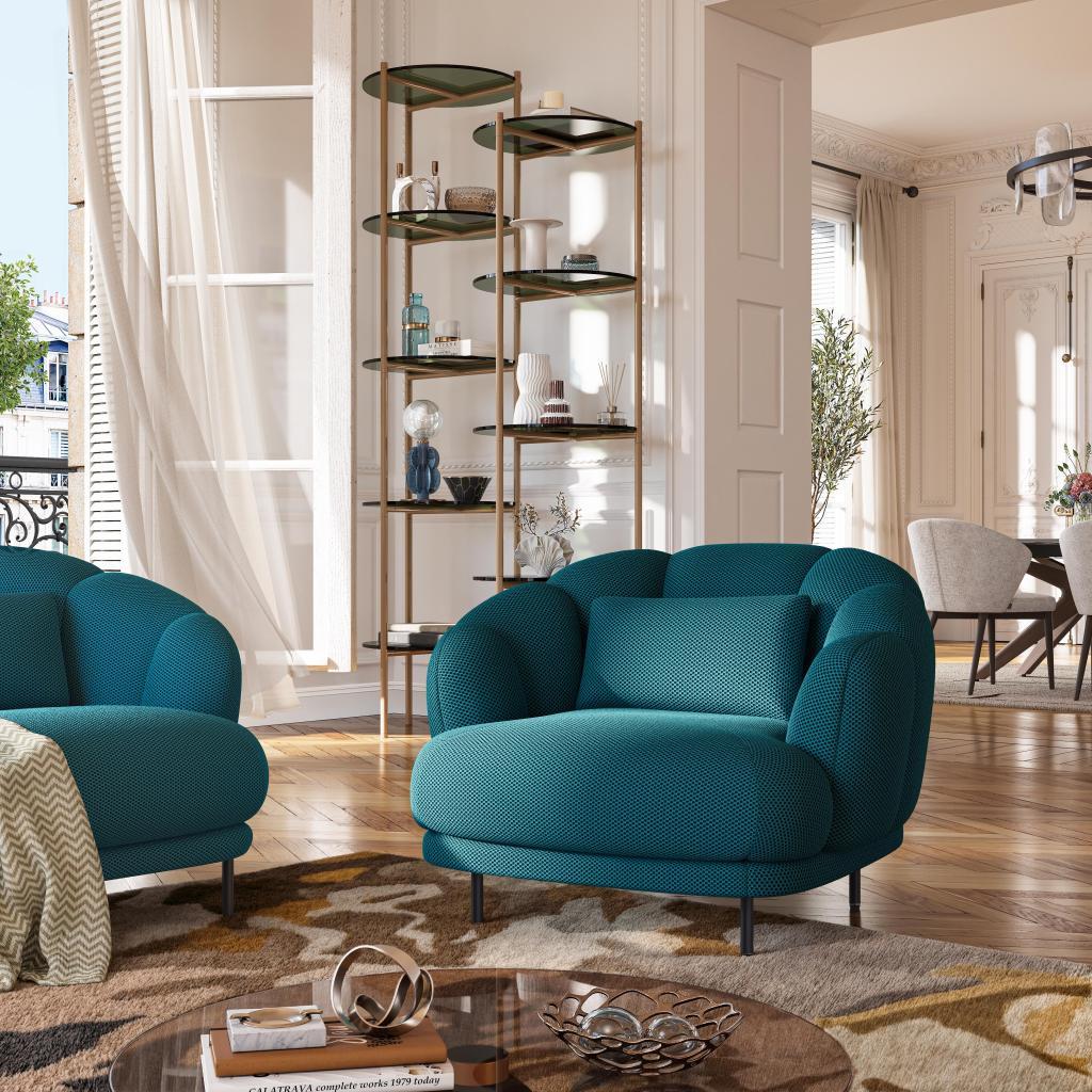 Habitat - Fauteuil en tissu 3D et métal - Bleu canard et noir - Design by Federica Francini - Paraty