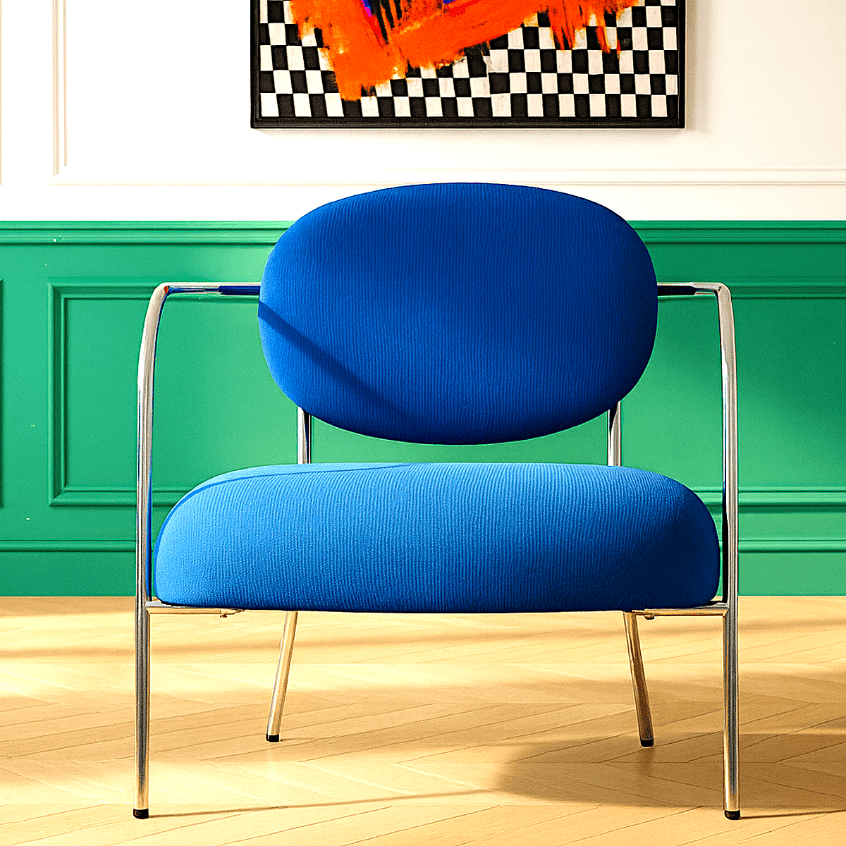 Fauteuil en velours côtelé bleu électrique et piètement chromé - Léon