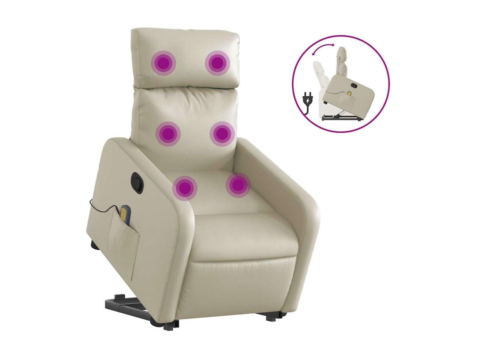 Fauteuil inclinable-Chaise de relax-Fauteuil de Massage Crème Similicuir SHL4810