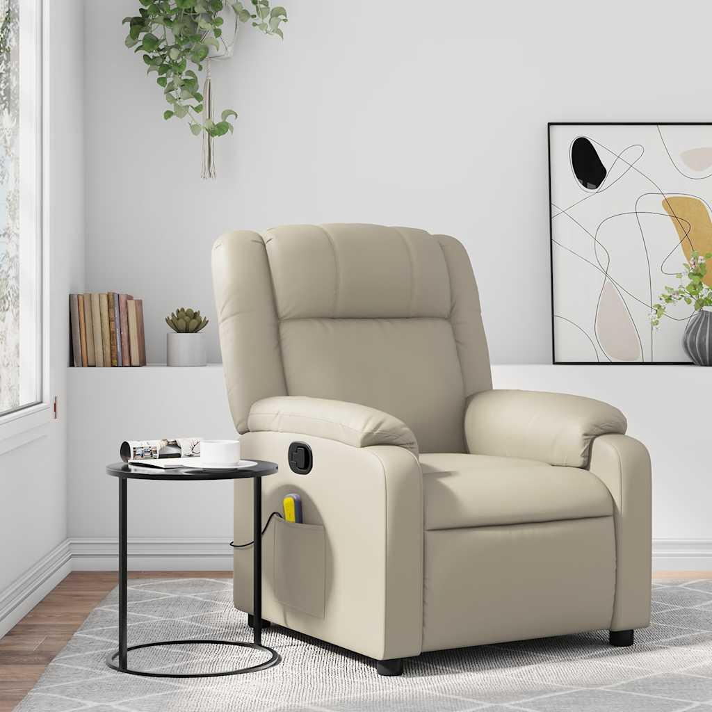 Fauteuil inclinable-Chaise de relax-Fauteuil de Massage crème similicuir SHL4858