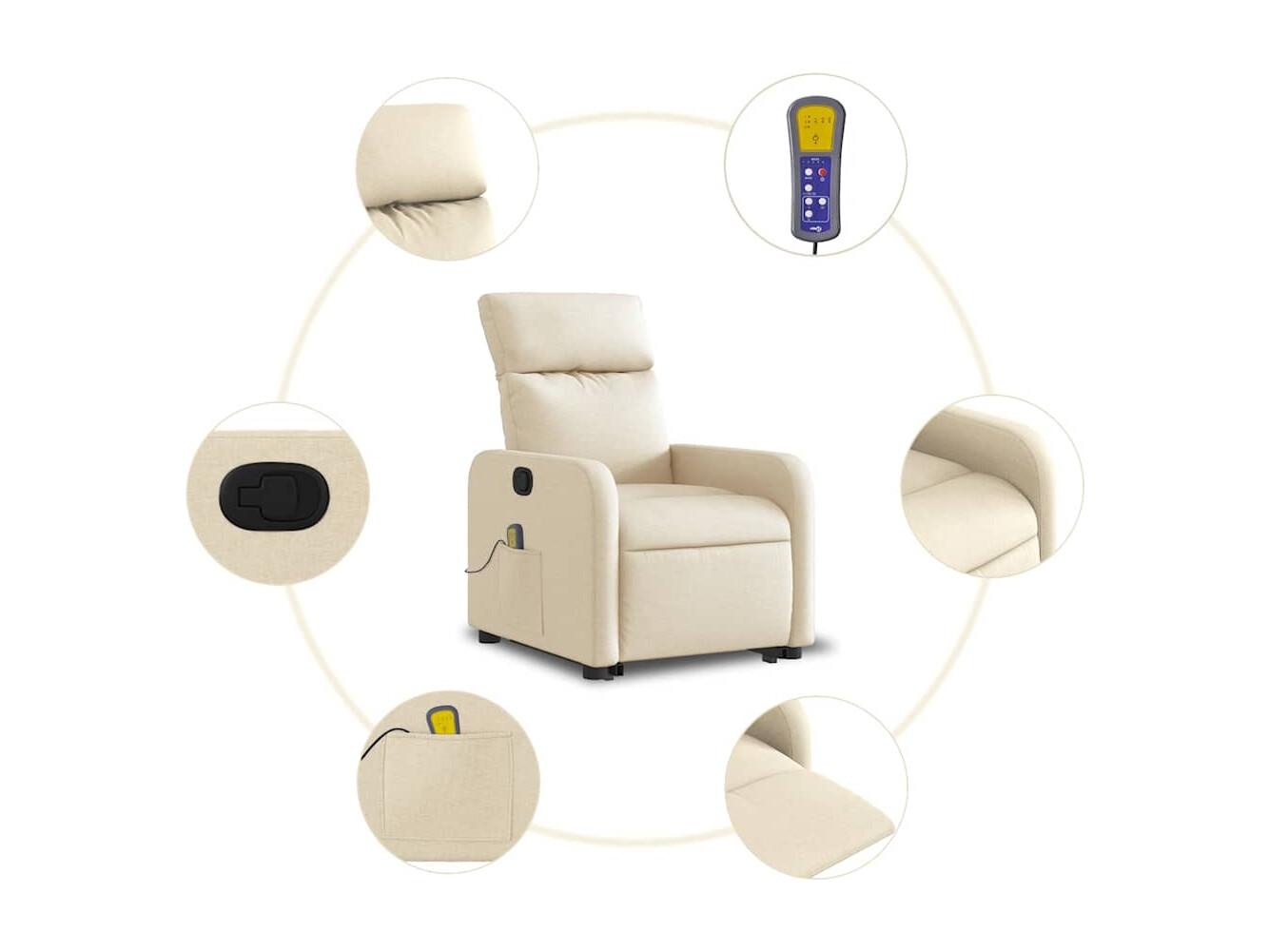 Fauteuil inclinable-Chaise de relax-Fauteuil de Massage Crème Tissu SHL4751