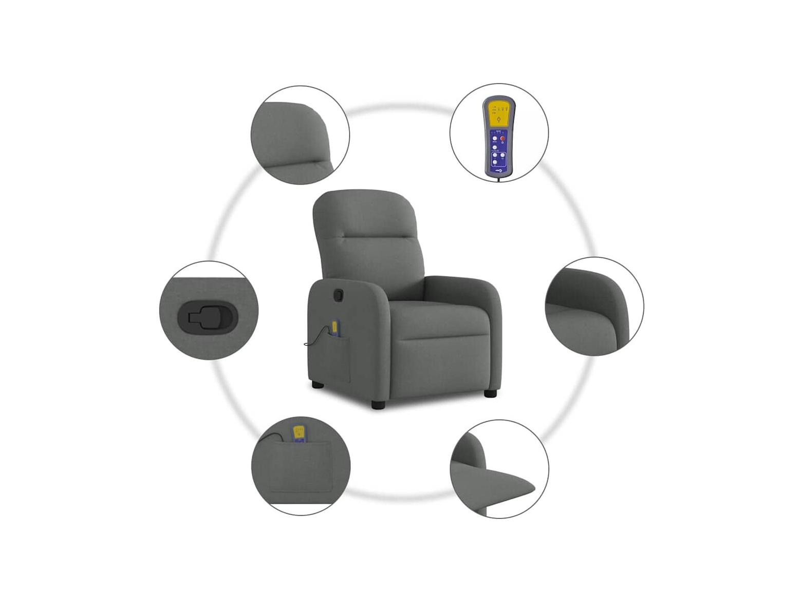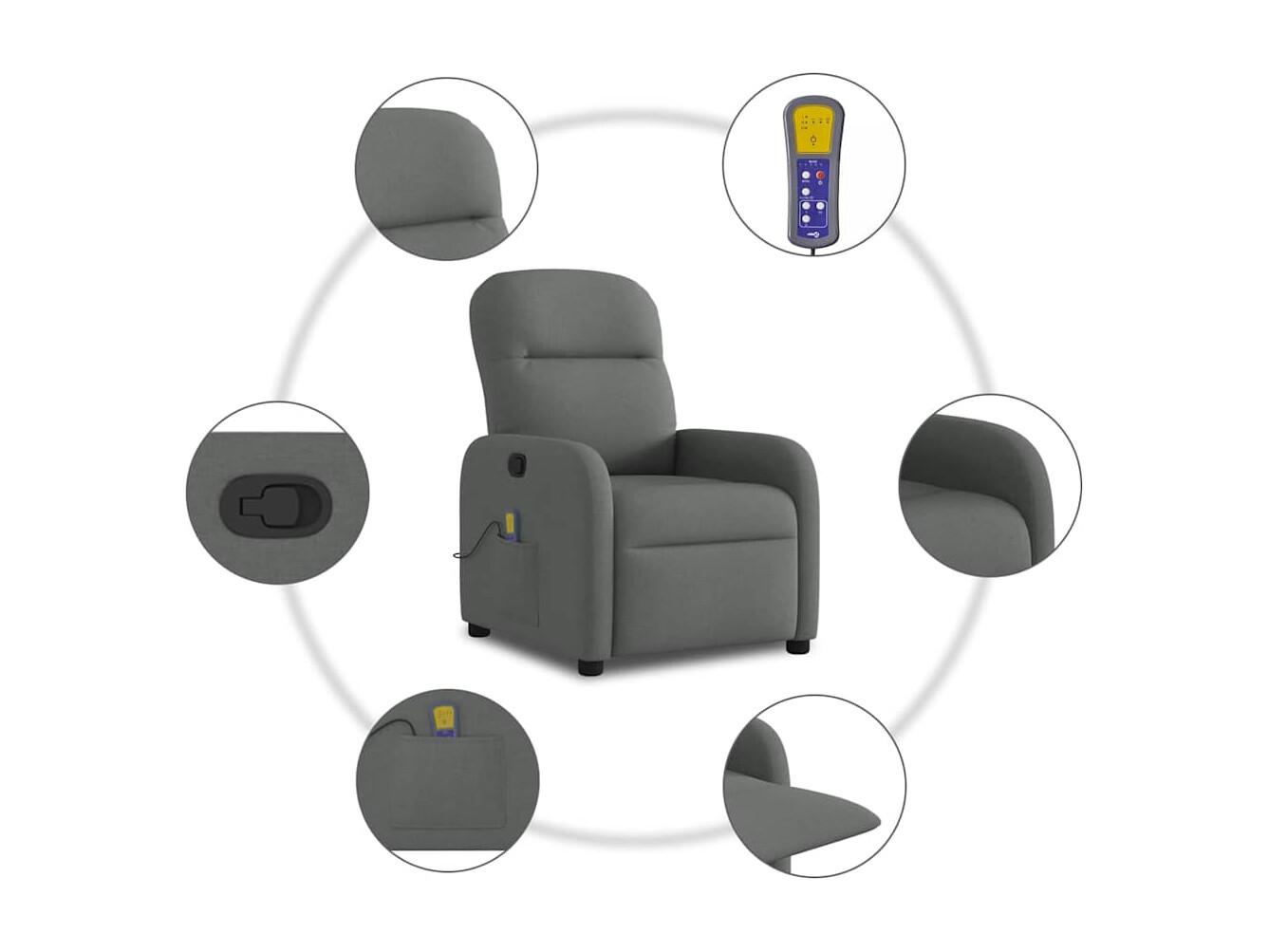 Fauteuil inclinable-Chaise de relax-Fauteuil de Massage Gris foncé Tissu SHL2089