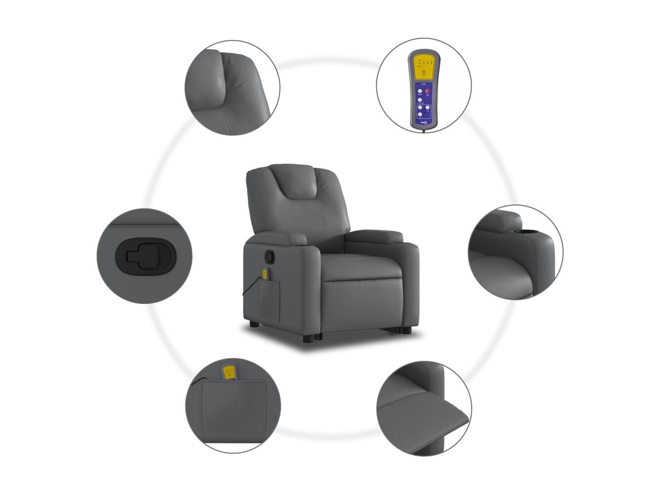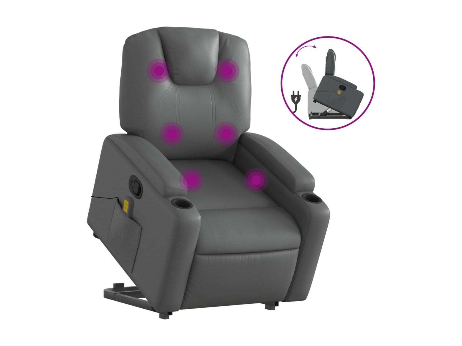 Fauteuil inclinable-Chaise de relax-Fauteuil de Massage Gris Similicuir SHL3165