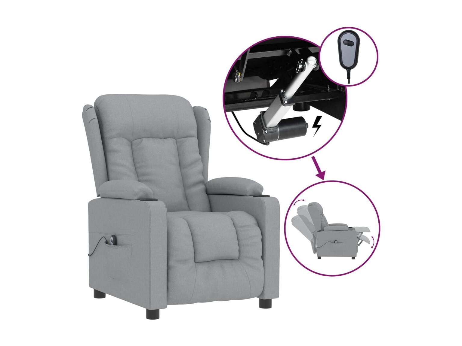 Fauteuil inclinable électrique-Chaise de relax-Fauteuil salon Gris clair Tissu SHL2967