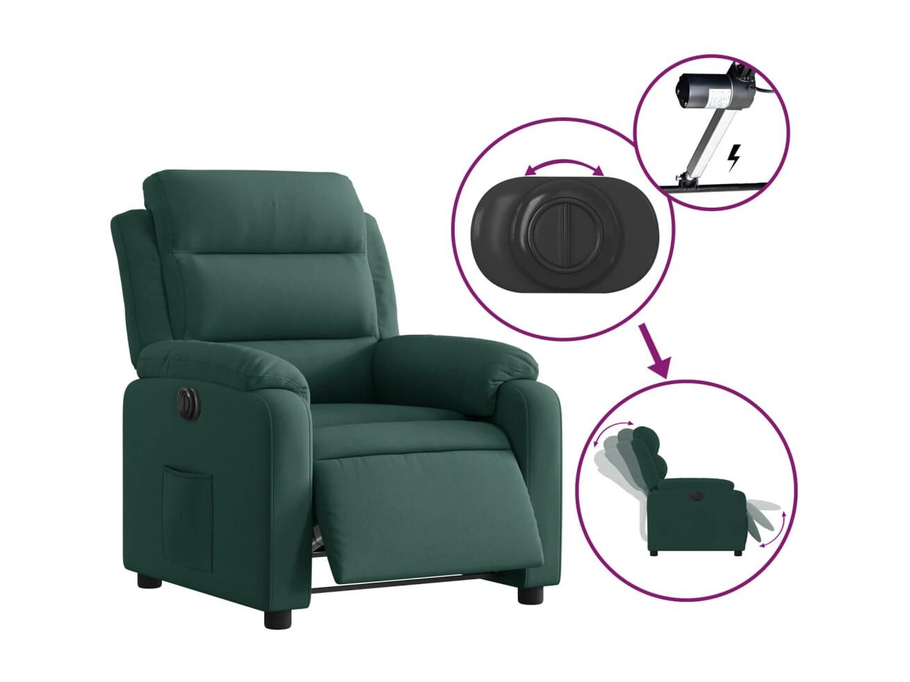 Fauteuil inclinable électrique-Chaise de relax-Fauteuil salon vert foncé velours SHL1188