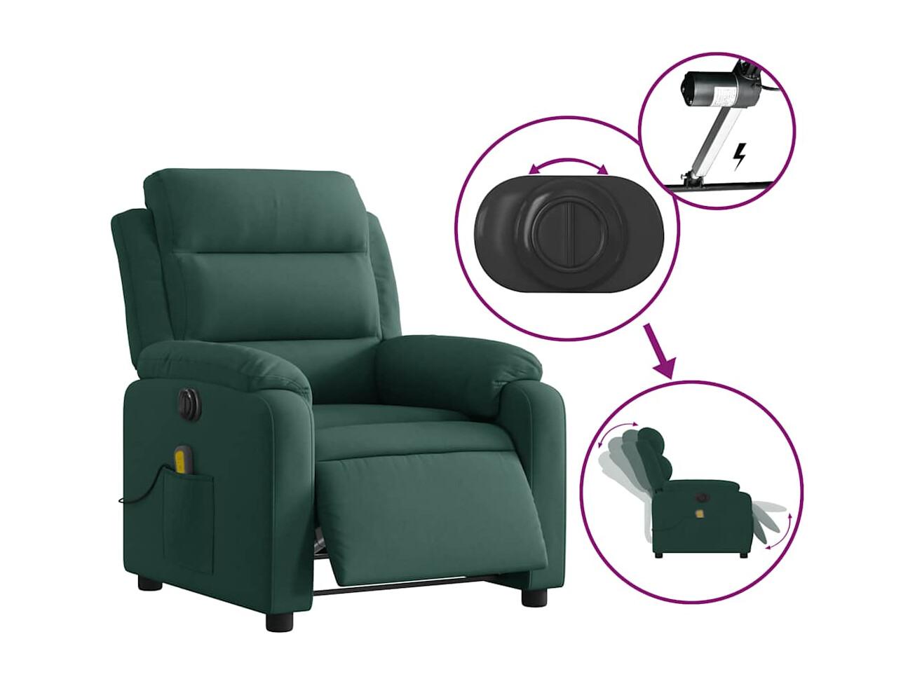 Fauteuil inclinable électrique-Chaise-Fauteuil de Massage vert foncé velours SHL2653
