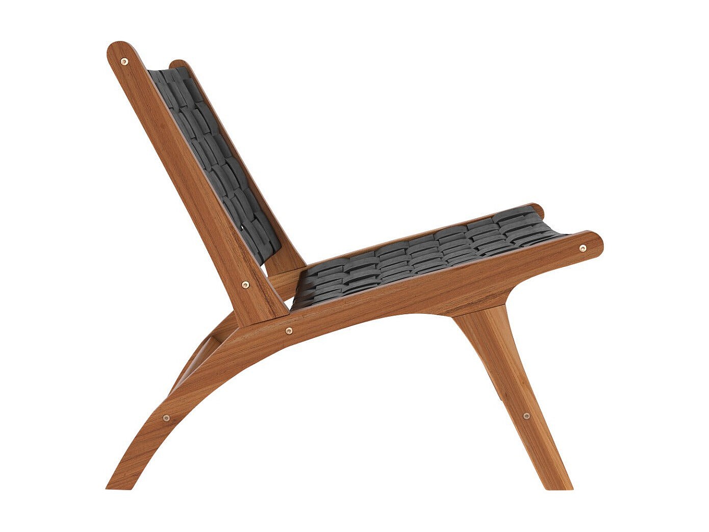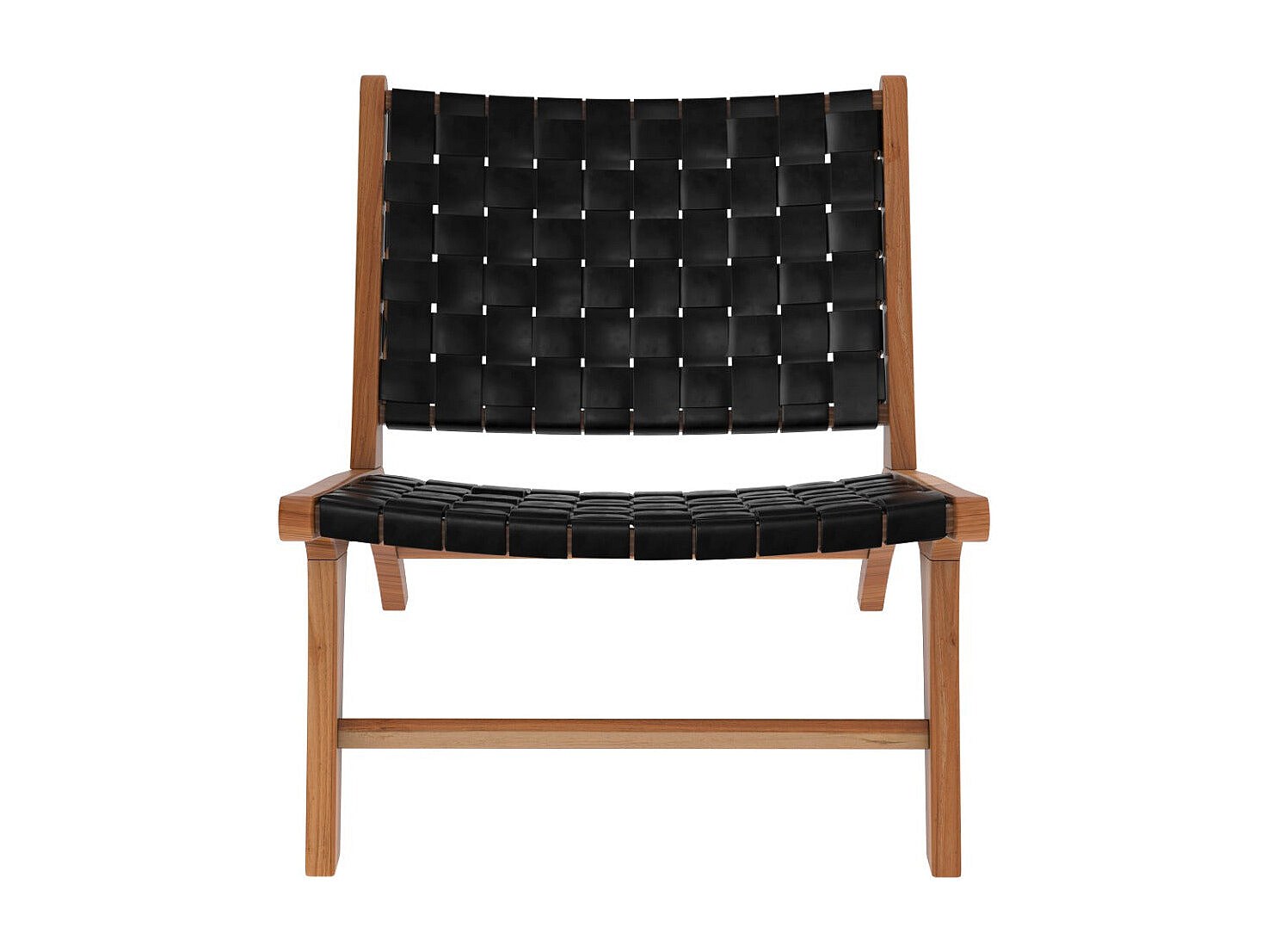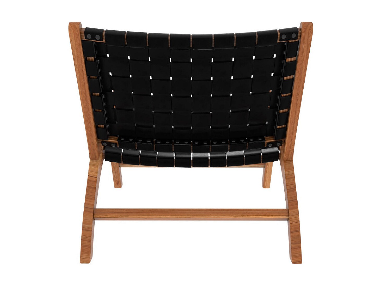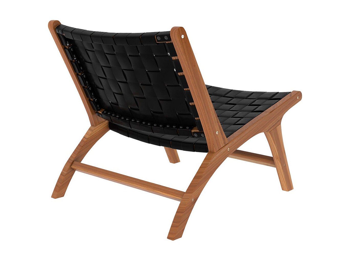 Fauteuil en teck et cuir tréssé noir - Kuna