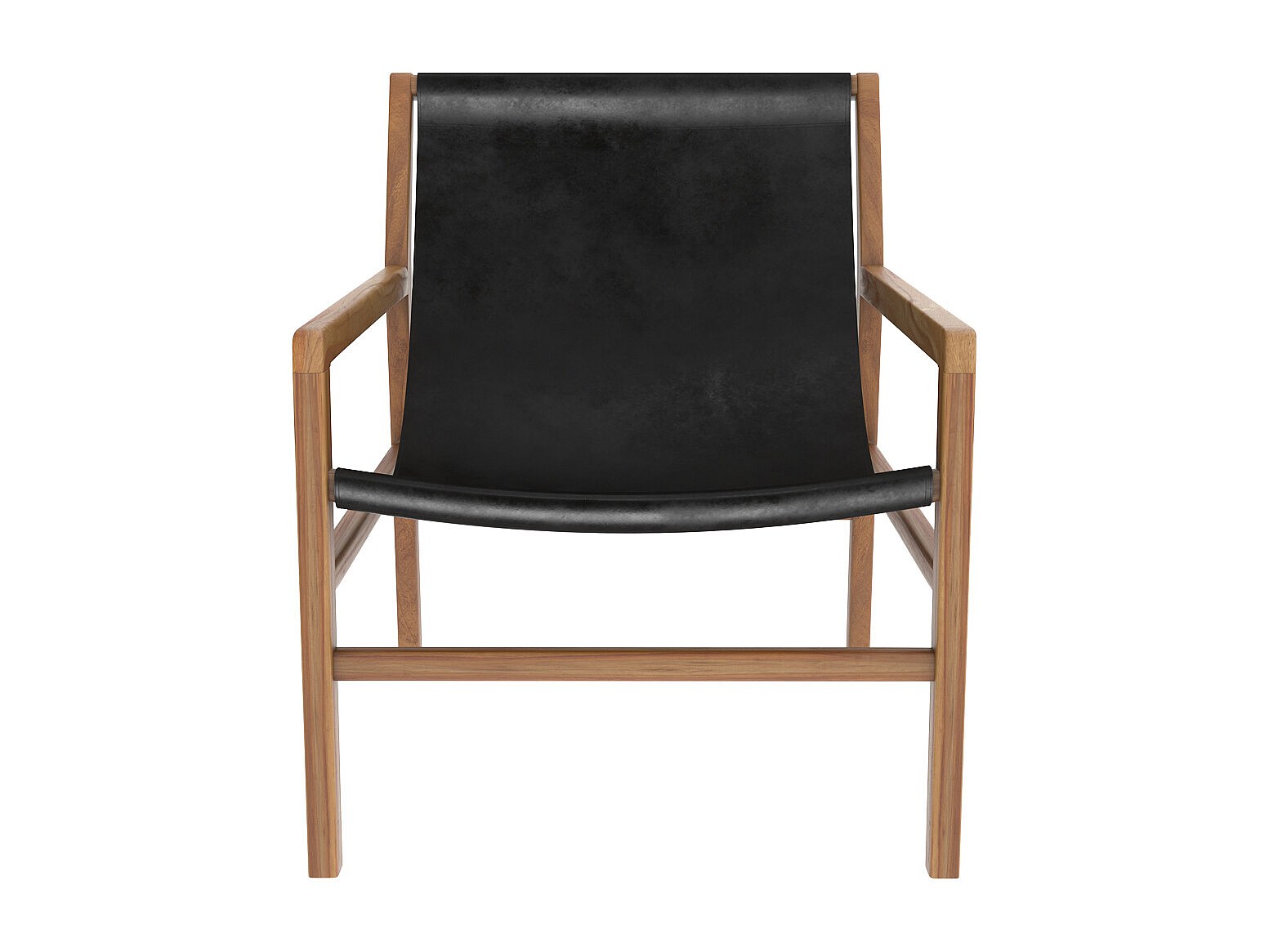 Fauteuil lounge en teck et cuir de vachette noir - Apache