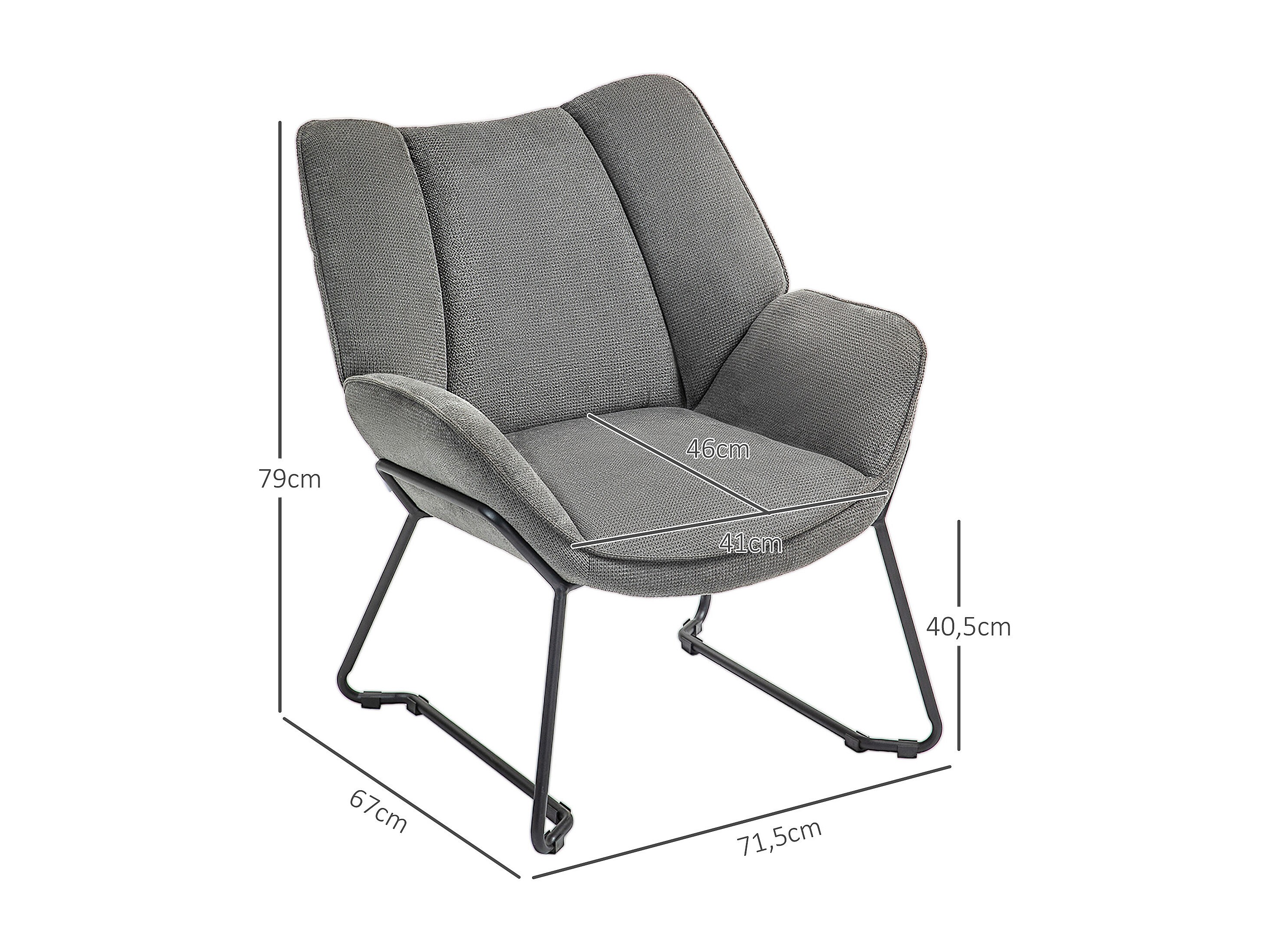 Fauteuil de lecture en tissu gris 75x99 cm-Naia