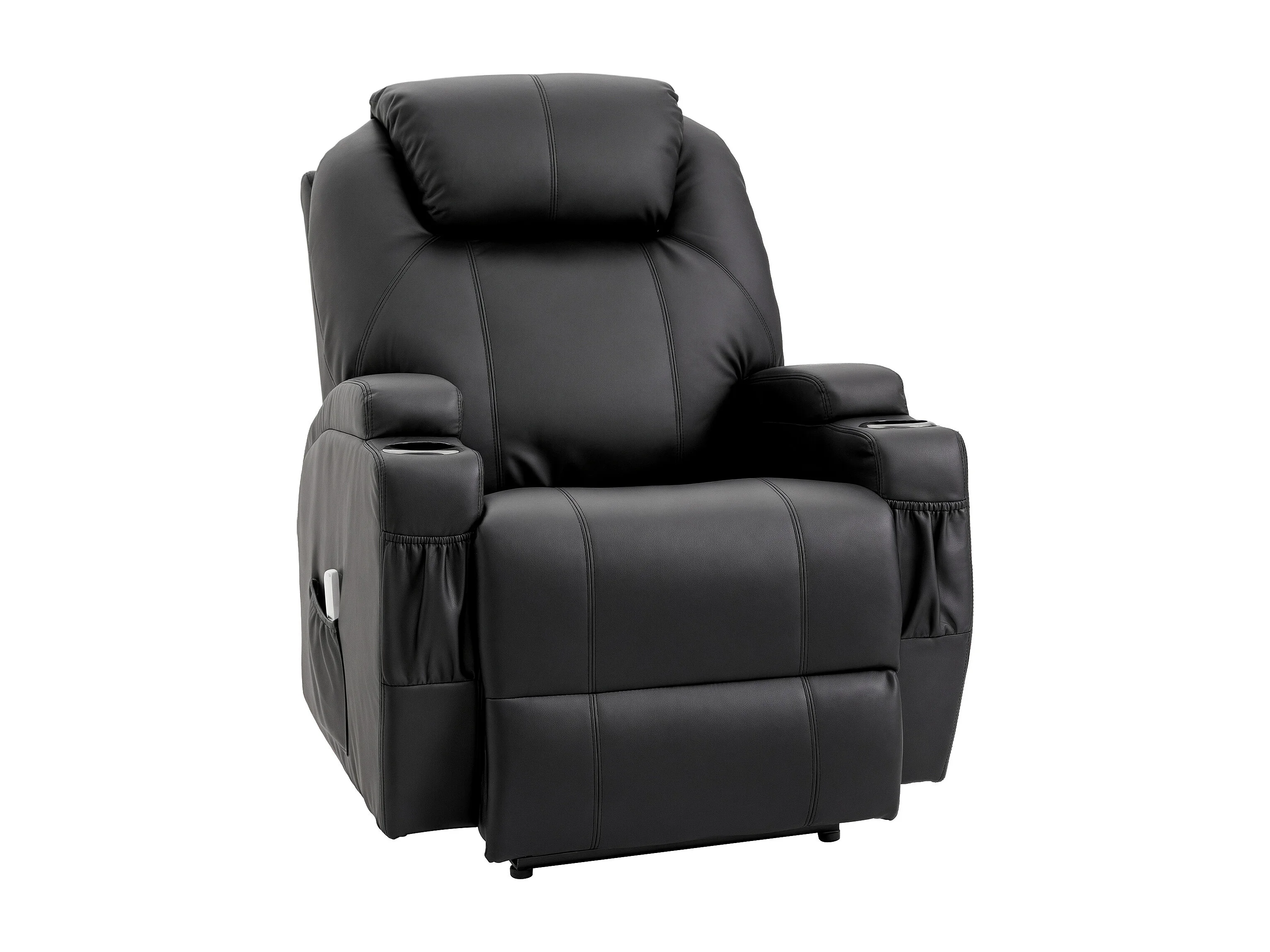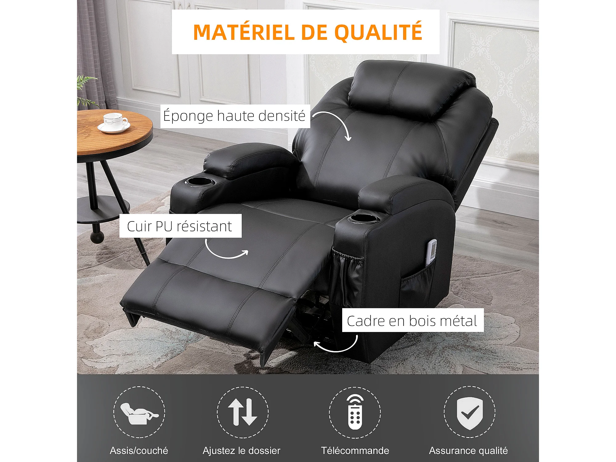 Fauteuil luxe de relaxation et massage inclinaison dossier repose-pied électrique revêtement synthétique noir