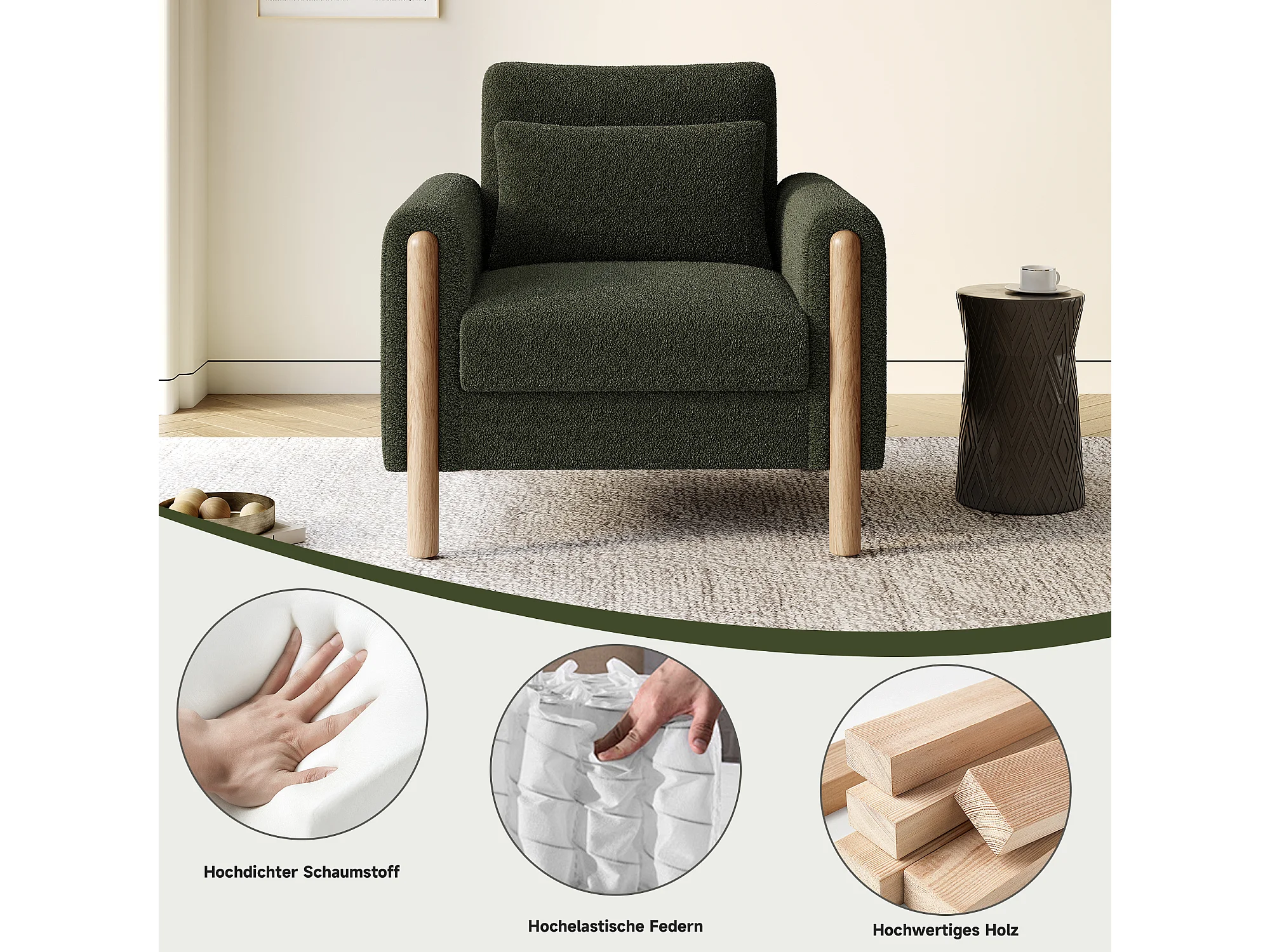 Fauteuil moderne avec coussin épais - 87 x 83 x 88.5 cm - fauteuil simple - velours - vert