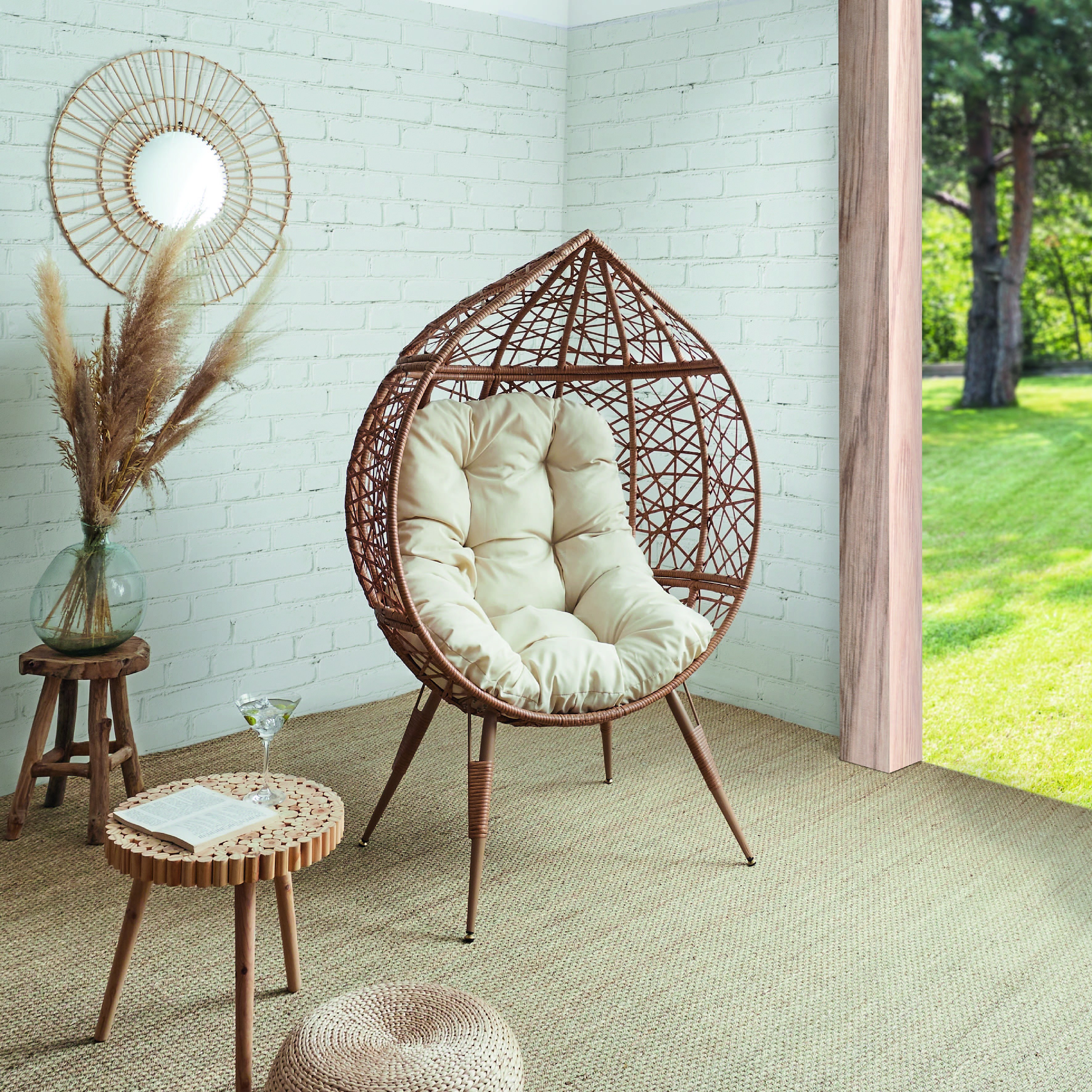 Fauteuil Oeuf Coussin Beige Marron, Blanc