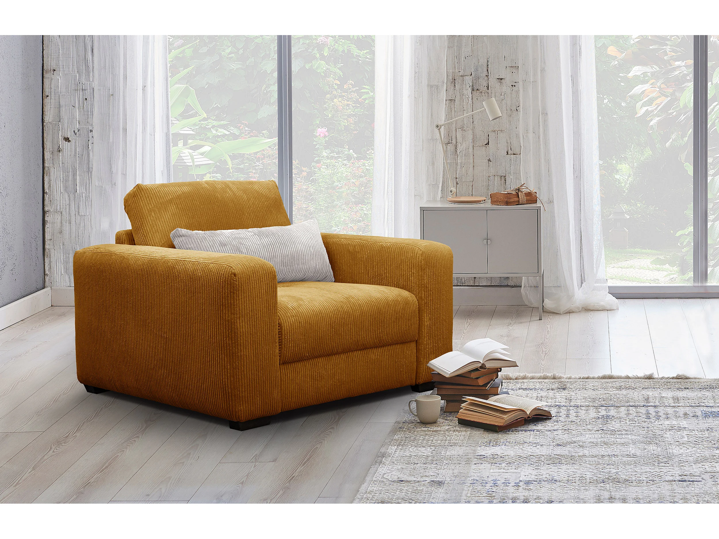 FAUTEUIL OLI en velours côtelé orange
