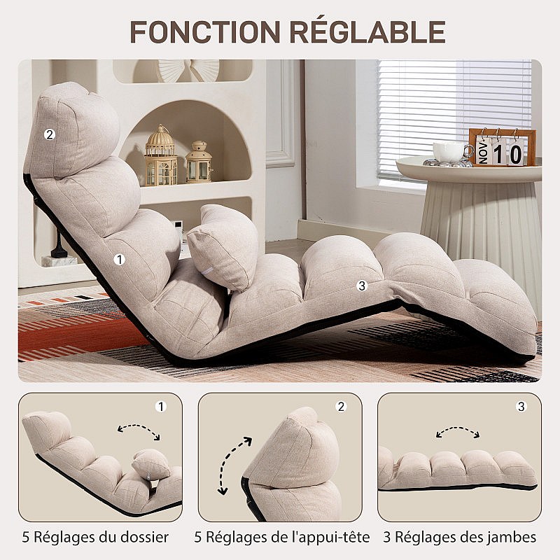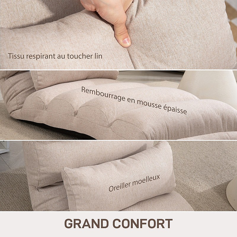 Fauteuil paresseux convertible LIZARO aspect lin beige