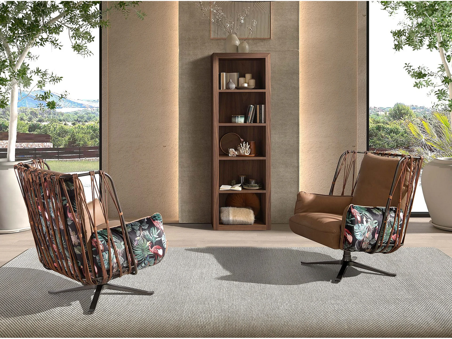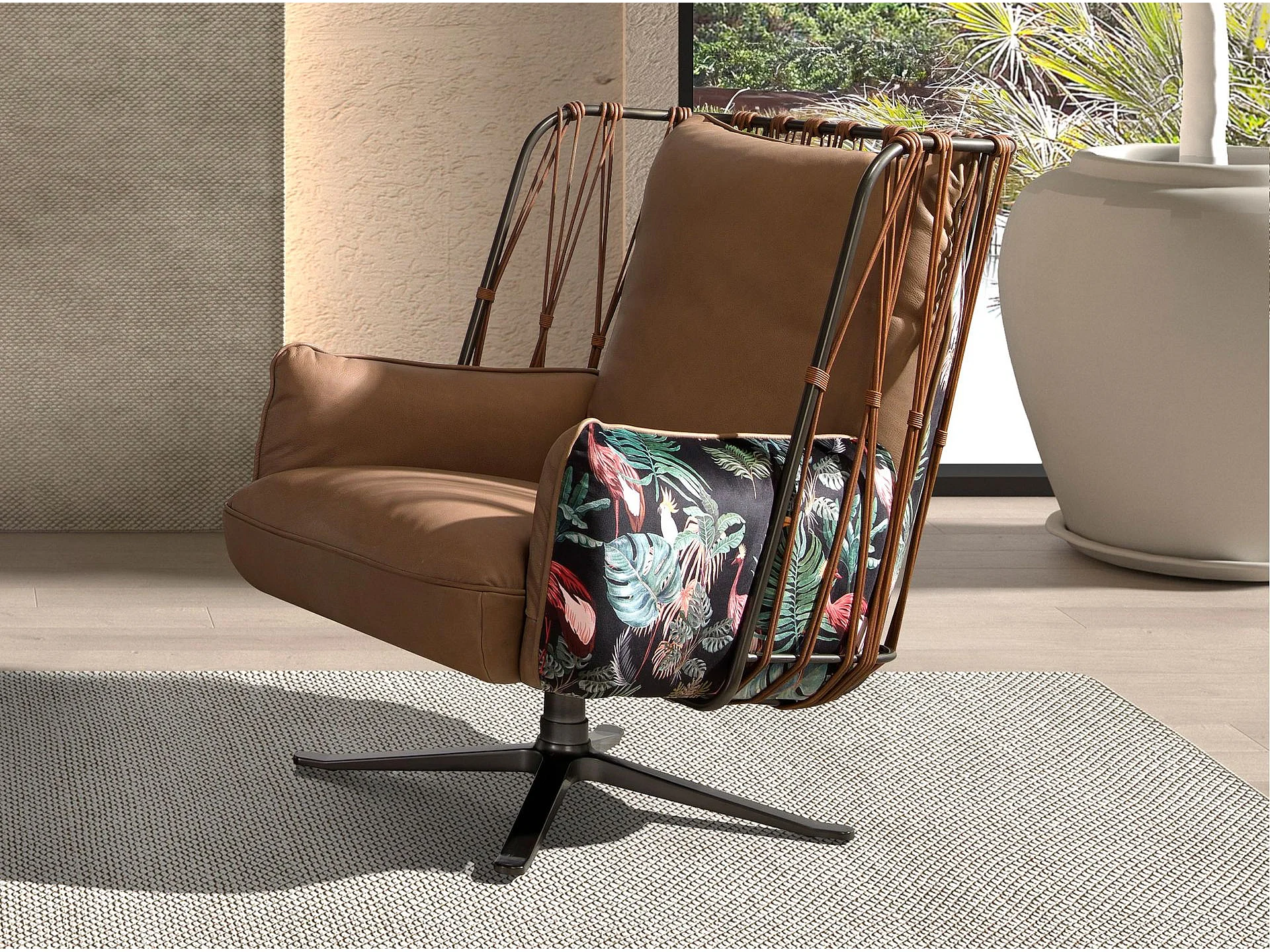 Fauteuil pivotant en cuir et tissu marron imprimé 5168 ANGEL CERDA