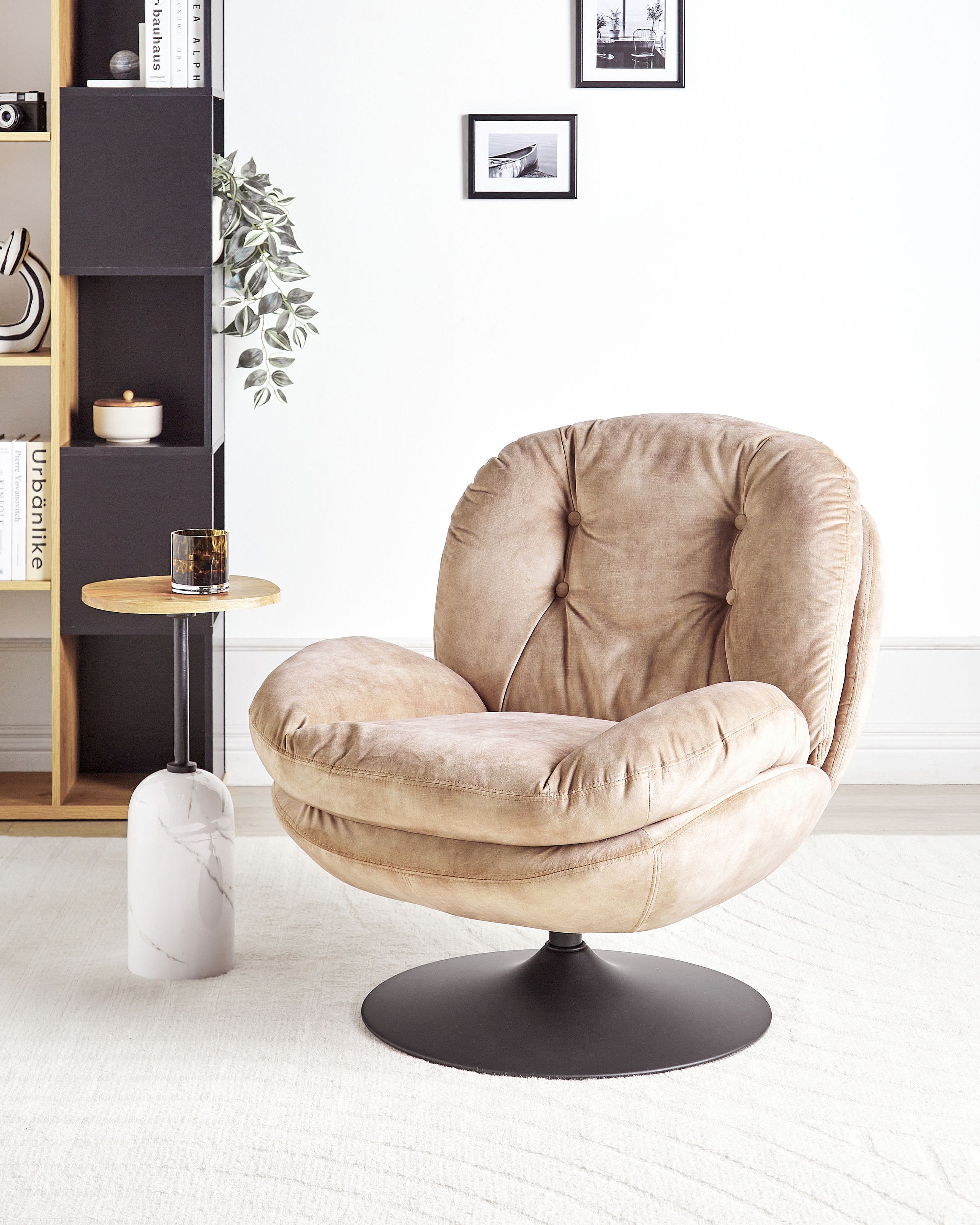 Fauteuil pivotant NOLVIK Velours Beige sable