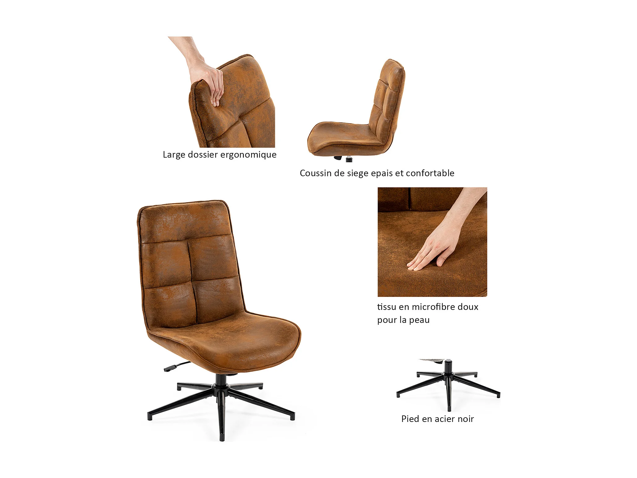 Fauteuil pivotant réglable en hauteur sans accoudoir en tissu microfibre style rétro vintage,CHARLOTTE