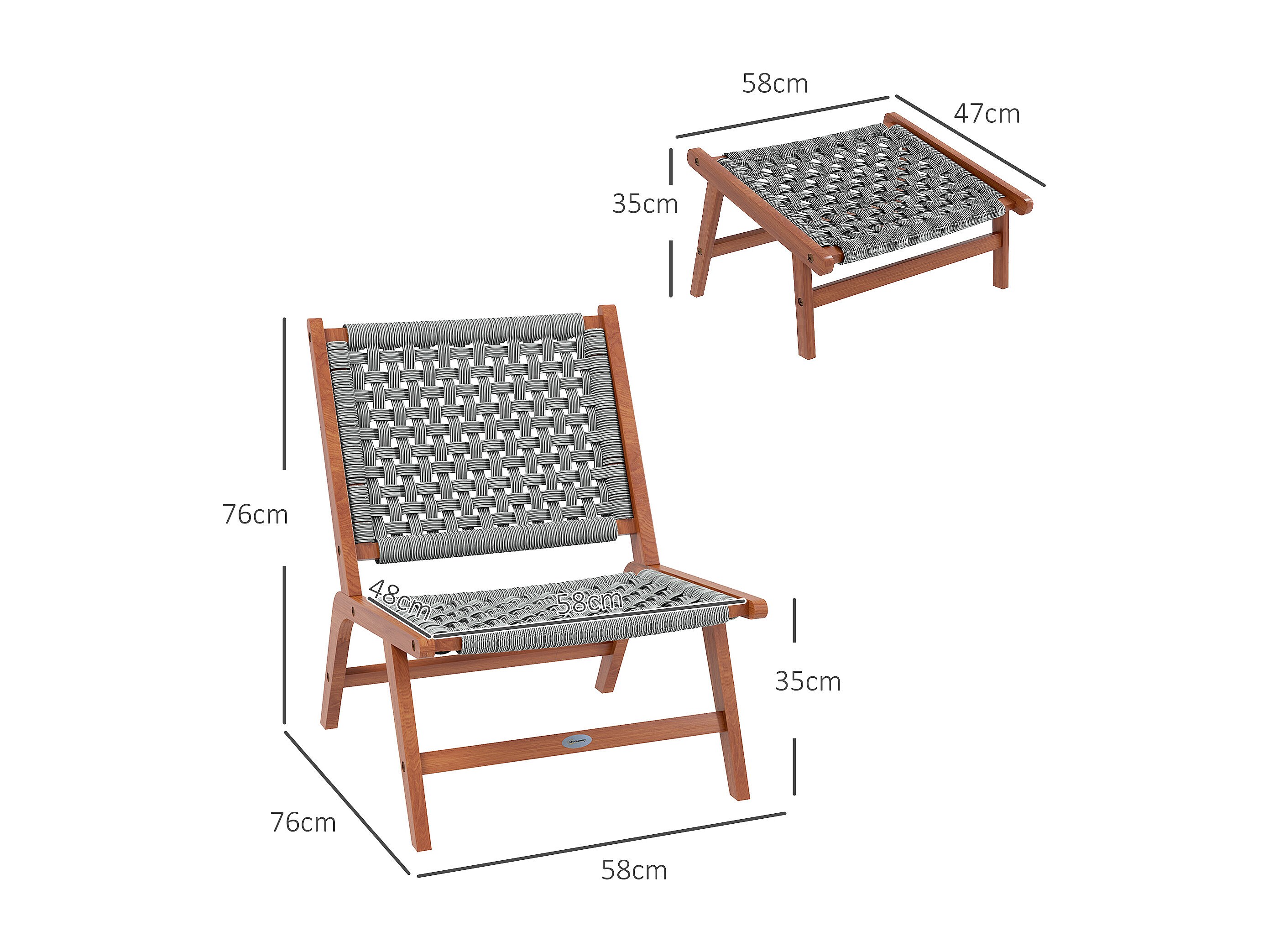 Fauteuil relax de jardin avec repose-pied bois d'acacia résine tressée grise