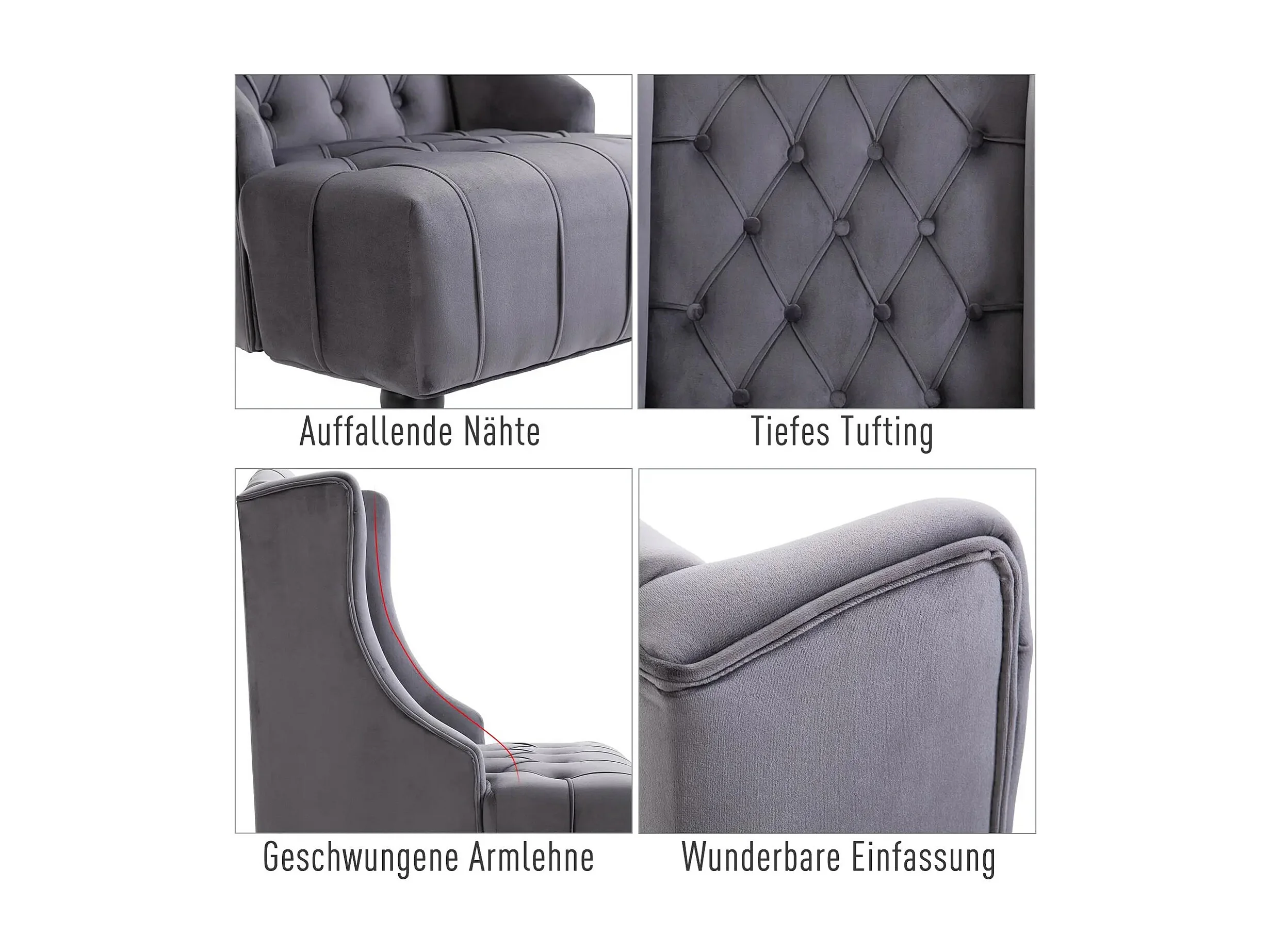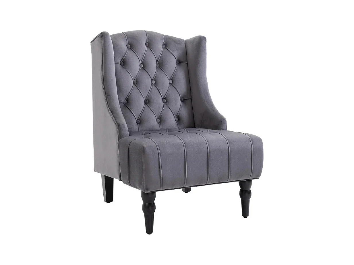 Fauteuil Relax, design moderne avec accoudoirs, tissu velours gris, structure en bois, 67 x 70.5 x 97 cm